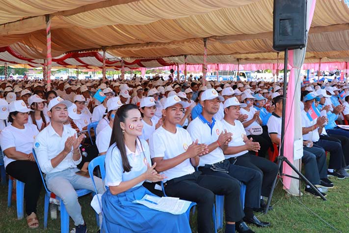 ព្រះវិហារ៖ ឯកឧត្ដម មាស សុភា សមាជិកគណៈអចិន្ត្រៃយ៍គណៈកម្មាធិការកណ្តាល និងជាប្រធានក្រុមការងារថ្នាក់កណ្តាលចុះមូលដ្ឋានខេត្តព្រះវិហារ នៅព្រឹកថ្ងៃទី០១ ខែកក្កដា ឆ្នាំ២០២៣នេះ បានអញ្ជើញប្រកាសបើក យុទ្ធនាការឃោសនា បោះឆ្នោតជ្រើសតាំងតំណាងរាស្រ្ត នីតិកាលទី៧ ឆ្នាំ២០២៣ ដែលមានសមាជិក សមាជិកា ចូលរួមប្រមាណជាង ៣០០០នាក់ មកពីស្រុកត្បែងមានជ័យ និងក្រុងព្រះវិហារ។