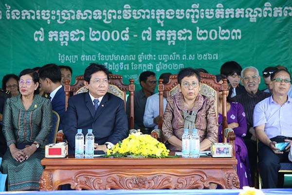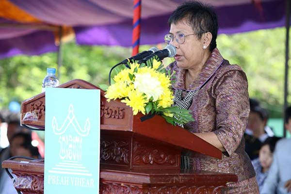 លោកជំទាវ បណ្ឌិតសភាចារ្យ ភឿង សកុណា រដ្ឋមន្រ្តីក្រសួង វប្បធម៌ និងវិចិត្រសិល្បៈបានថ្លែងថា តាមរយៈកិច្ចខិតខំប្រឹងប្រែងដ៏មោះមុតស្វិតស្វាញរបស់រាជរដ្ឋាភិបាល នៃព្រះរាជាណាចក្រកម្ពុជា ទទួលជោគជ័យ ក្នុងការស្នើបញ្ចូលប្រាសាទព្រះវិហារ ចូលជាសម្បត្តិបេតិកណ្ឌពិភពលោក ក្រោមម្លប់នៃសុខសន្តិភាព មរតកវប្បធម៌ ច្រើនអនេក ដែលស្ទើរតែបាត់បង់ ក្នុងសម័យសង្រ្គាម បានរស់រានមានជីវិតឡើងវិញ និងកំពុងត្រូវបានលើកស្ទួយ ឈានទៅដល់ក្លាយជាសម្បត្តិបេតិកភណ្ឌពកភពលោក និងសម្បត្តិមនុស្សជាតិ ។