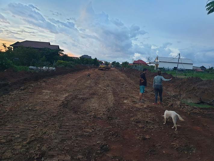 សូមបញ្ជាក់ថា! ផ្លូវក្រាលគ្រោះក្រហមប្រវែង១៤០០ម៉ែត្រដែលជាគំរោងមូលធិរបស់សាលាក្រុងព្រះវិហារ មានទំហំខ្នងផ្លូវគ្រោះក្រហម៧ម៉ែត្រ ចិញ្ជើមផ្លូវដីសទាំងសងខាង៤ម៉ែត្រ សរុបទំហំទទឹង១៥ម៉ែត្រហើយបានកាយប្រឡាយសងខាងដើម្បីរំដោះទឹកចេញជាសវាងហូរដាច់ផ្លូវផងដែរ៕