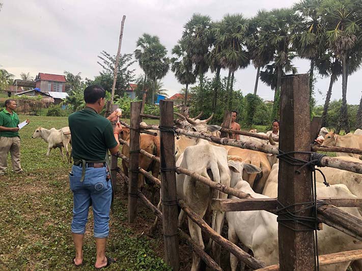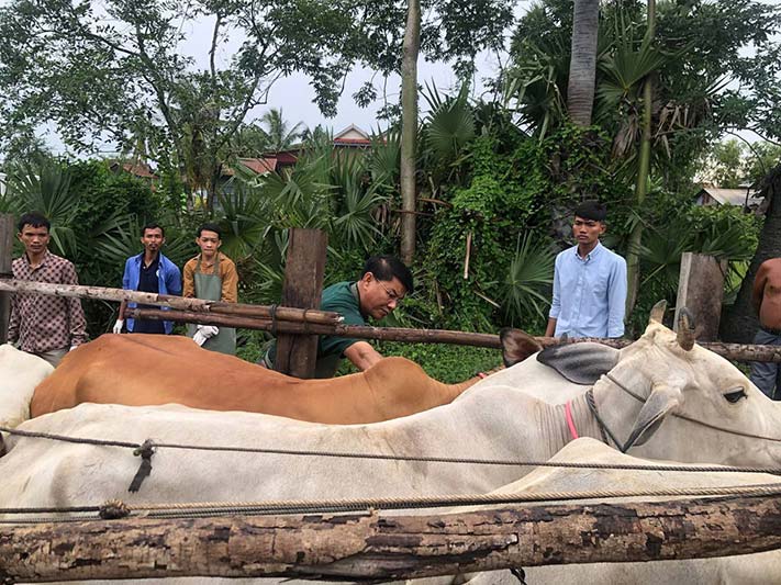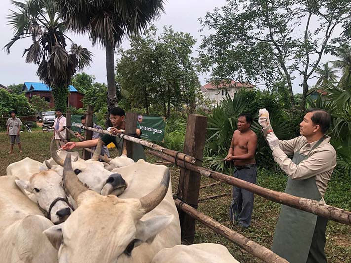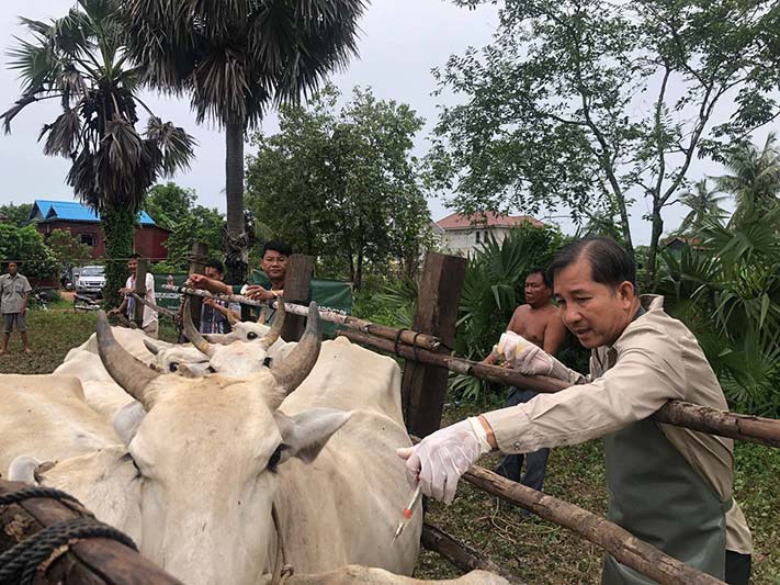 កំពង់ធំ. ថ្ងៃព្រឹកទី០៤ ខែសីហា ឆ្នាំ២០២៣ លោក ចាន់ បញ្ញាវ័ន្ត ប្រធានការិយាល័យផលិតកម្ម និងបសុព្យាបាលខេត្ត និងលោកអនុប្រធានការិយាល័យ បានដឹកនាំមន្ត្រីជំនាញនិងភ្នាក់ងារសុខភាពសត្វភូមិ និងមានកិច្ចសហការចូលរួមដោយមន្ត្រីទទួលបន្ទុកផ្នែកសុខភាពសត្វ និងផលិតកម្មសត្វ ប្រចាំស្រុកកំពង់ស្វាយ និងអាជ្ញាធរមូលដ្ឋានភូមិឃុំ បានបើកយុទ្ធនាការចាក់ថ្នាំការពារជំងែឆ្លងសត្វគោក្របី(សារទឹក)ជូនដល់ប្រជាកសិករចិញ្ចឹមសត្វ។ លោក ចាន់ បញ្ញាវ័ន្ត បានលើកឡើងថា ជាលទ្ធផលក្រុមការងារយើងសម្រេចចាក់បានសត្វគោក្របីចំនួនសរុប២០០ក្បាល ដែលស្ថិតនៅភូមិព្រេន ឃុំព្រៃគុយ ស្រុកកំពង់ស្វាយ ខេត្តកំពង់ធំ។