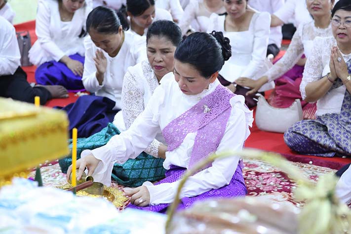 លោកជំទាវអភិបាលខេត្ត បានបន្តថា៖ ការចូលកាន់ព្រះវស្សារបស់ព្រះសង្ឃក្នុងពុទ្ធសាសនា គឺជាអំឡុងពេលដ៏សំខាន់ ដើម្បីឲ្យភិក្ខុ សាមណេរ បានសិក្សារៀនសូត្រព្រះបរិយត្តិធម៌ និងបដិបត្តិធម៌វិន័យ ឱ្យបានខ្ជាប់ខ្ជួន តាមពុទ្ធប្បញ្ញត្តិរយៈពេល០៣ខែ ចាប់ផ្តើមពីថ្ងៃ ០១រោច ខែអាសាឍ ដល់ថ្ងៃ ១៥កើត ខែអស្សុជ ហើយការនាំយកគ្រឿងឧបភោគ បរិភោគ និងបច្ច័យ មកវេរប្រគេនដល់ព្រះសង្ឃកំពុងគង់ចាំព្រះវស្សាអស់កាលត្រីមាសនាពេលនេះ គឺដើម្បីដោះស្រាយការលំបាករបស់ព្រះសង្ឃ ដែលកំពុងបដិបត្តិធម៌ និងសិក្សារៀនសូត្រនូវធម៌វិន័យព្រះសម្មាសម្ពុទ្ធ ព្រះបរមគ្រូនៃយើង ។