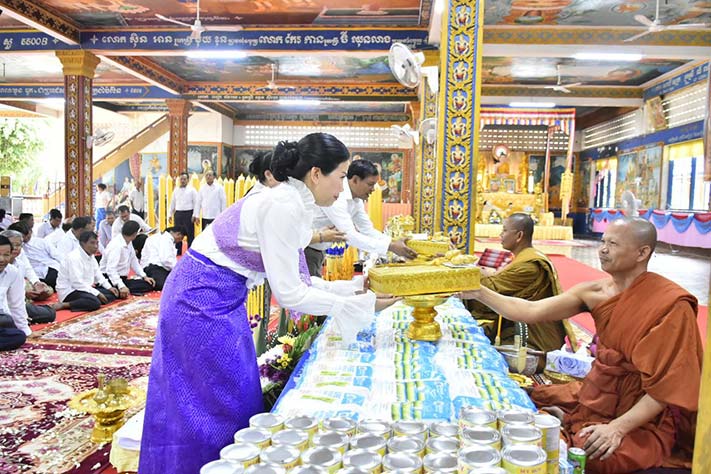 ខេត្តប៉ៃលិន ៖ កាលពីព្រឹកថ្ងៃទី០៤ ខែសីហា ឆ្នាំ២០២៣លោកជំទាវ បាន ស្រីមុំ អភិបាល នៃគណៈអភិបាលខេត្តប៉ៃលិន និងថ្នាក់ដឹកនាំមន្ត្រីរាជការ ព្រមទាំងក្រុមការងារ បានអញ្ជើញនាំយកទេយ្យទានទេយ្យវត្ថុ ជាគ្រឿងឧបភោគ បរិភោគ និងបច្ច័យ ទៅវេរប្រគេនដល់ព្រះសង្ឃដែលគង់ចាំព្រះវស្សាអស់កាលត្រីមាសទូទាំងខេត្តប៉ៃលិនចំនួន៣៤វត្តនៅវត្តរតនសោភ័ណ ហៅវត្តកោងកាង ស្ថិតក្នុងភូមិវត្ត សង្កាត់ប៉ៃលិន ក្រុងប៉ៃលិន ខេត្តប៉ៃលិន ។