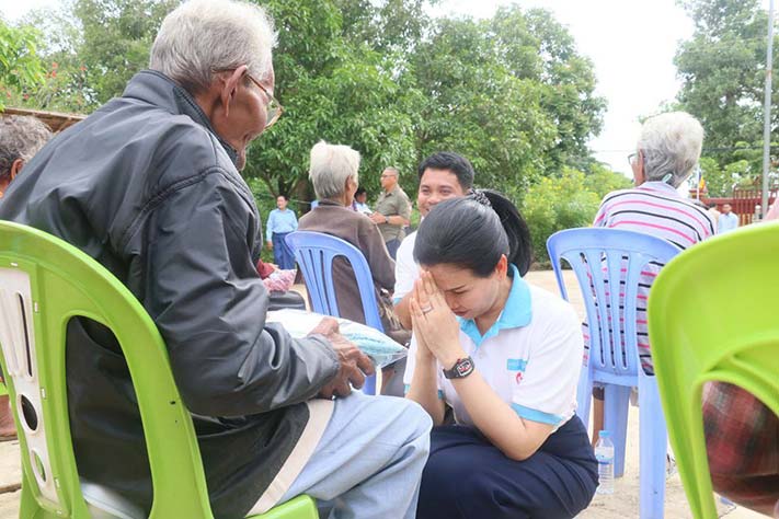លោកជំទាវ បាន ស្រីមុំ បានមានប្រសាសន៍នាំមកនូវបណ្តាំផ្ញើសាកសួរសុខទុក្ខពីសំណាក់ សម្តេចអគ្គមហាសេនាបតីតេជោ ហ៊ុន សែន នាយករដ្ឋមន្ត្រី និងសម្តេចកិត្តិព្រឹត្តិបណ្ឌិត ប៊ុន រ៉ានី ហ៊ុន សែន ប្រធានកាកបាទក្រហមកម្ពុជា ជូនដល់លោកយាយ លោកតាចាស់ជរាទាំងអស់ ដែលជានិច្ចកាល សម្តេចទាំងទ្វេរ តែងតែគិតគូពីសុខទុក្ខរបស់ប្រជាពលរដ្ឋគ្រប់រូប គ្រប់កាលៈទេសៈ និងគ្រប់ទីកន្លែងនៅទូទាំងប្រទេស ។