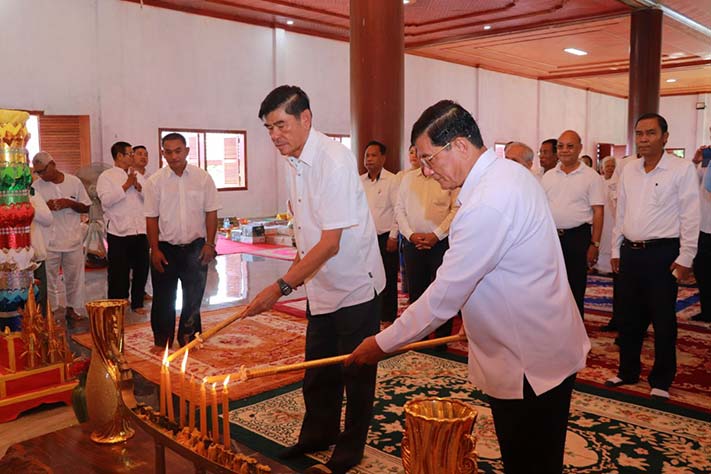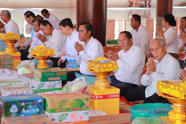 ព្រះវិហារ៖ នាព្រឹកថ្ងៃទី១៤ ខែសីហា ឆ្នាំ២០២៣នេះ ឯកឧត្តម ទេសរដ្ឋមន្រ្តី មាស សុភា ទទួលបន្ទុកបេសកម្មពិសេស និងជាប្រធានក្រុមការងារថ្នាក់កណ្ដាលចុះមូលដ្ឋានខេត្តព្រះវិហារ បានដឹកនាំក្រុមការងារថ្នាក់កណ្ដាលថ្នាក់ខេត្ត ក្រុមប្រឹក្សាខេត្តមន្រ្តីរាជការ នាំយកគ្រឿងឧបភោគបរិភោគ និងទេយ្យទាន ប្រគេនដល់ព្រះសង្ឃដែលគង់ចាំព្រះវស្សាអស់ត្រីមាសចំនួន៧វត្ត ស្ថិតនៅវត្តប្រាសាទគោកបេង ក្នុងក្រុងព្រះវិហារ ខេត្តះវិហារ។