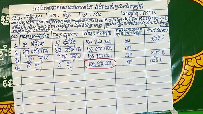 បើតាមតារាងដេញថ្លៃ បានបង្ហាញថា ក្រុមហ៊ុនដាក់ប្រជែងដេញថ្លៃ ឃើញថា នៅឃុំចំនួនពីក្នុងស្រុកពួក នេះ ការដេញថ្លៃខ្ពស់ទាបជាងគ្នាចន្លោះចាប់៤ម៉ឺនរៀល ទៅប្រមាណ១លានរៀលតែប៉ុណ្ណោះ ។ ហេតុនេះហើយទើប អ្នកសង្កេតការណ៍មួយចំនួនក៏ដូចជាក្រុមហ៊ុនចូលរួមដេញថ្លៃមួយចំនួនលើកឡើងថា ៖«មានការសហការគ្នាដេញថ្លៃបានល្អ!»