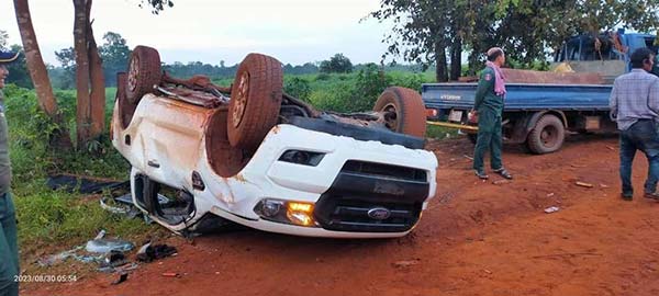 ប្រភពដដែលនេះបានបន្តថា.ហេតុការដែលបង្កអោយរថយន្តក្រឡាប់ផ្ងាជើងនេះគឺមកពីរថយន្តដឹកឈើធ្ងន់លើសកម្រឹត.បើកគេចពីសមត្ថកិច្ចទើបរ៉េចង្កូតបែកកង់ខាងឆ្វេងទាំងសងខាង