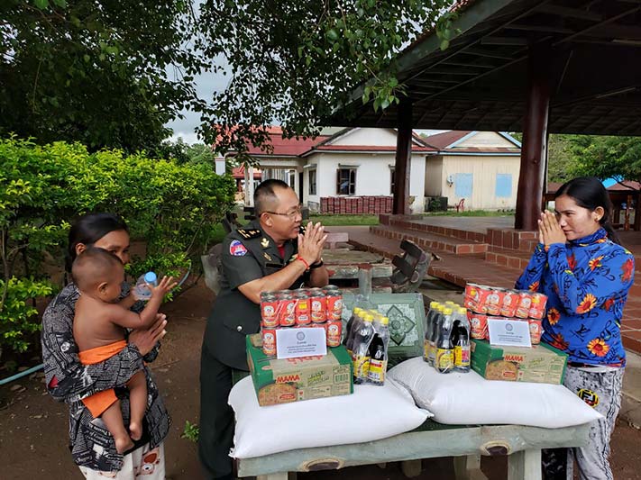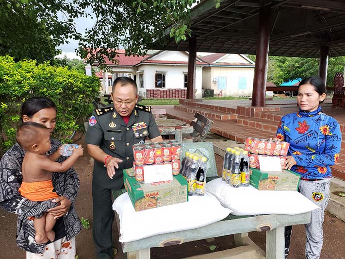 ព្រះវិហារ៖ នៅល្ងាចថ្ងៃទី ០៤ ខែកញ្ញា ឆ្នាំ២០២៣នេះ ក្រោយពីបានទទួលដំណឹង តាមរយៈលោកស្រី អនុភូមិភារកិច្ច សង្កាត់ប៉ាលហាល ក្រុងព្រះវិហារ ខេត្ដព្រះវិហារ ថាមានពលរដ្ឋចំនួន០២គ្រួសារបានដាច់ស្បៀងអាហាចំនួន៣ថ្ងៃ ហើយ នេះបើតាមការរៀបរាប់របស់ពូកគាត់ ម្នាក់បានរៀបរាប់ថា ដោយសារដាច់ស្បៀងប្ដីទៅធ្វើការសំណង់មេការអត់បើកលុយអោយ ម្នាក់ទៀតថាប្ដីជាប់ទោសនៅពន្ធធនាគារ ហេតុនេះហើយធ្វើអោយពួកគាត់ទាំង០២គ្រូសារមានការលំបាកយ៉ាងខ្លាំង និងខ្វះស្បៀងអាហាហូបចុកប្រចាំថ្ងៃ ភ្លាមៗនោះ ឯកឧត្ដម ឧត្ដមសេនីយ៍ទោ ច័ន្ទ សុភ័ក្ដ្រា មេបញ្ជាការតំបន់ប្រតិបត្តិការសឹករងព្រះវិហារ បានអញ្ជើញគ្រួសារខ្វះខាតចំនួន០២គ្រួសារនោះ ចូលទៅក្នុងទីបញ្ជាការជួបសំណេះសំណាលសួរសុខទុក្ខនិងផ្ដល់អំណោយជាស្បៀងអាហាដល់ពួកគាត់ទាំង០២គ្រួសារ ដើម្បីដោះស្រាយជីវភាព។