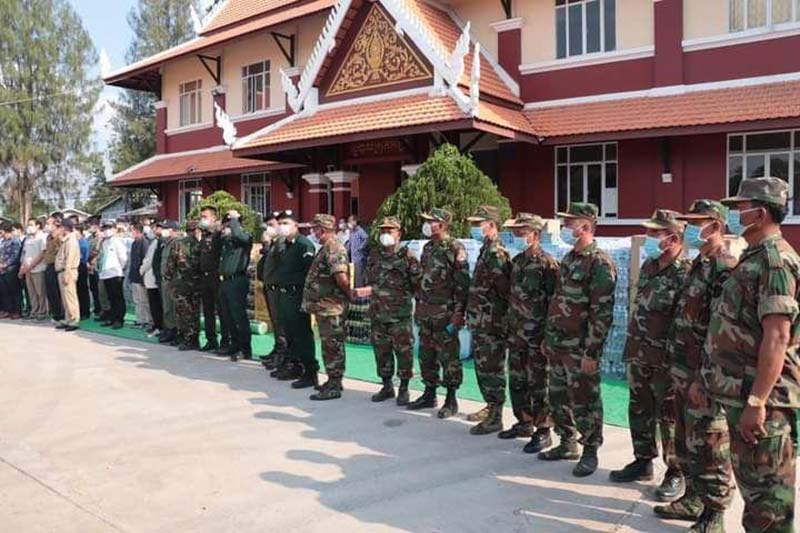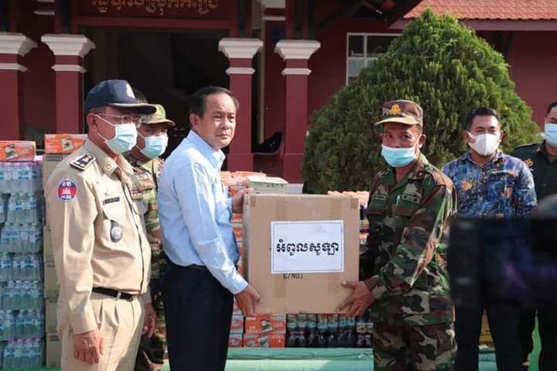 បាត់ដំបង៖នៅរសៀលថ្ងៃសុក្រ ៧រោច ខែផល្គុន ឆ្នាំជូត ទោស័ក ព.ស២៥៦៤ ត្រូវនឹងថ្ងៃទី០៥ ខែមីនា ឆ្នាំ២០២១ ឯកឧត្តម ងួន រតនៈ អភិបាល នៃគណៈអផិបាលខេត្តបាត់ដំបង បានអញ្ជើញដឹកនាំគណៈប្រតិភូចុះសួរសុខទុក្ខ សំណេះសំណាល កងកម្លាំងដែលឈរជើងគ្រប់គ្រងស្ថានការណ៍ នៃការរីករាលដាលជំងឺកូវីដ-១៩ នៅតាមខ្សែរបន្ទាត់ព្រំដែន និងបានចែកជូនជាសម្ភារៈ ព្រមទាំងសម្ភារៈប្រើប្រាស់មួយចំនួនដែលជាអំណោយរបស់រដ្ឋបាលខេត្តបាត់ដំបង និងអាជីវករតាមរយៈ លោកឧកញ៉ា ភួ ពុយ លោកឧកញ៉ា អុឹង គឹមលី និងលោក កត បូរ៉ាន ព្រមទាំងសប្បុរសជន ដើម្បីធ្វើការចែកជូនដល់កងកម្លាំងដែលឈរជើងនៅតាមព្រំដែនកម្ពុជា ថៃ ក្នុងដំណាក់កាលនៃការប្រយុទ្ធប្រឆាំងនឹងជម្ងឺកូវីដ-១៩ ។