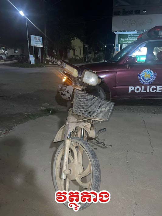 វត្ថុតាងចាប់យក ១- ម៉ូតូម៉ាកHONDA C110 ចាស់ ពណ៌ទឹកប៊ិច គ្មានផ្លាកលេខ ជារបស់ជនរងគ្រោះនិងសម្ភារមួយចំនួន ។