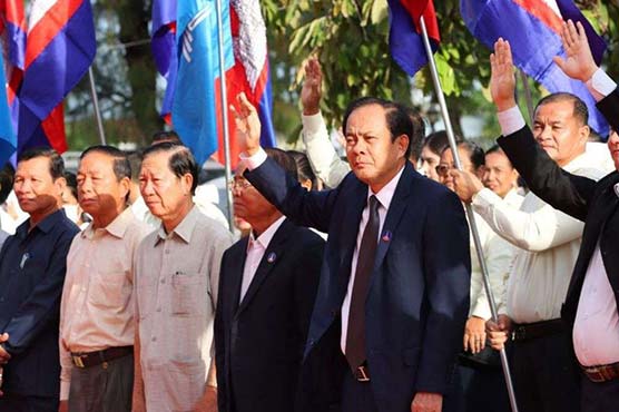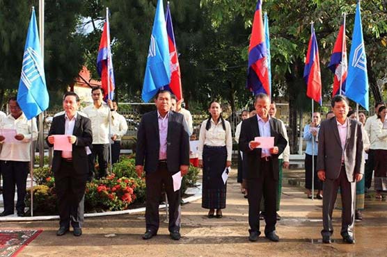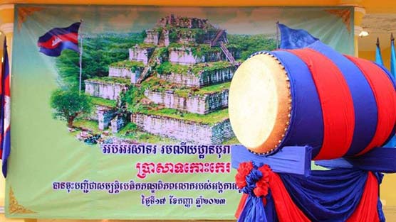 កំពង់ធំ. ឯកឧត្តម ឈុន ឈន់ ប្រធានក្រុមប្រឹក្សាខេត្ត ឯកឧត្តម ងួន រតនៈ អភិបាលខេត្តកំពង់ធំ និងមន្ត្រីរាជការនៅសាលាខេត្តកំពង់ធំ ប្រារព្ធពីធីអបអរសាទរ ការដាក់បញ្ចូលរមណីយដ្ឋានប្រាសាទកោះកេរ ក្នុងបញ្ជីបេតិកភណ្ឌពិភពលោក នៅបរិវេណសាលាខេត្តកំពង់ធំ។