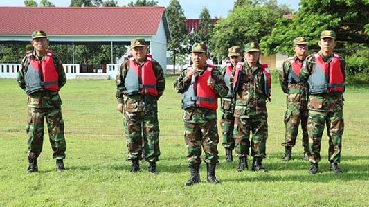 កំពង់ធំ. លោកឧត្តមសេនីយ៍ទោ សោម ស៊ុន មេបញ្ជាការតំបន់ប្រតិបត្តិការសឹករងកំពង់ធំ បានត្រួតពិនិត្យកងកម្លាំងអន្តរាគមន៍ នៃបញ្ជាការដ្ឋានតំបន់ប្រតិបត្តិការសឹករងកំពង់ធំ ដែលមានភារកិច្ចត្រៀមជួយសង្គ្រោះប្រជាពលរដ្ឋរងគ្រោះ ដោយទឹកជំនន់ក្នុងពេលដែលទឹកស្ទឹងសែន ហក់ឡើងលើសកម្រិតប្រកាសការប្រុងប្រយ័ត្នថ្ងៃនេះ។