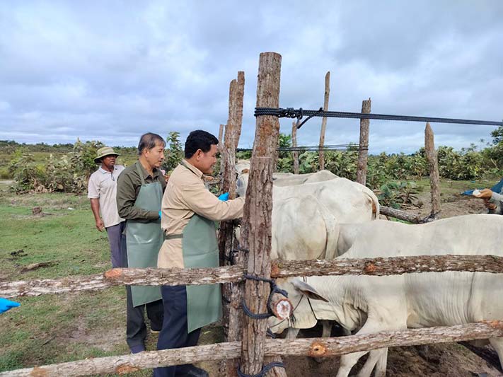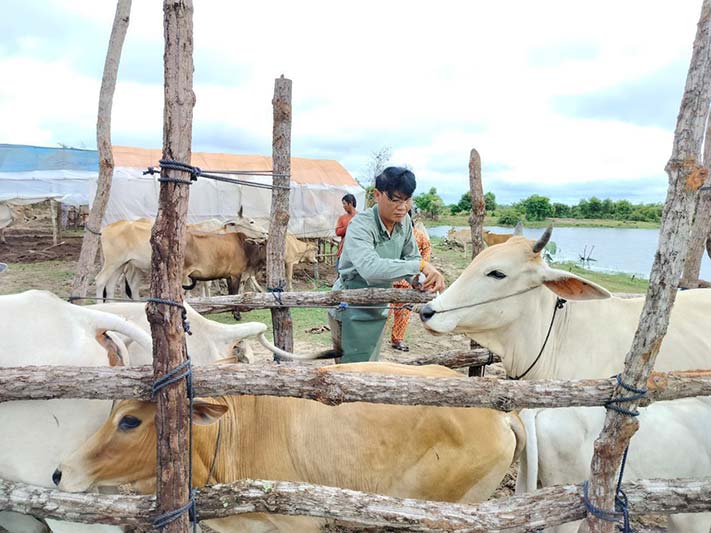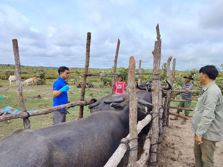 កំពង់ធំ. ក្រុមការងាររបស់ការិយាល័យផលិតកម្ម និងបសុព្យាបាលខេត្ត ដឹកនាំដោយលោក ចាន់ បញ្ញាវ័ន្ត ប្រធានការិយាល័យ រួមទាំងមន្ត្រី និងដោយមានការអញ្ជើញចូលរួមដោយលោក ថនស៊ី ពុទ្ធា អភិបាលរងស្រុកប្រាសាទសំបូរ ព្រមទាំងមន្ត្រីការិយាល័យកសិកម្ម ធនធានធម្មជាតិ និងអាជ្ញាធរមូលដ្ឋាន និងភ្នាក់ងារសុខភាពសត្វភូមិ បានរៀបចំចាក់វ៉ាក់សាំងការពារជំងឺសាទឹកសត្វគោក្របី ជូនកសិករ នៅទីទួលសុវត្ថិភាពត្រពាំងលាងដាវ ស្ថិតក្នុងភូមិសំបូរ ឃុំសំបូរ ស្រុកប្រាសាទសំបូរ ខេត្តកំពង់ធំ។