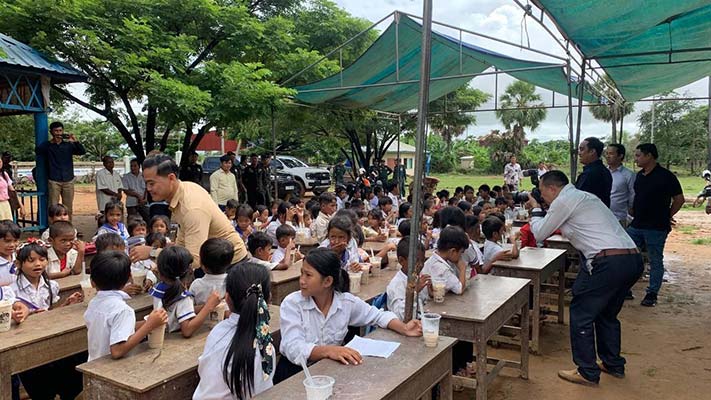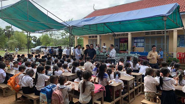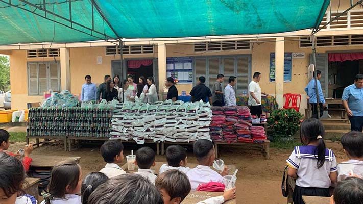– សំរាប់លោកនាយកសាលា ថវិកា២០មឺនរៀល – សំរាប់សិស្សានុសិស្សចំនួន១០៧នាក់ ក្នុង១នាក់ទទួលបានសំភារៈដូចជា ÷-កាតាបមួយ-សៀវភៅ៥ក្បាល-បិចខៀវបិចក្រហមសរុបខំនួន៥ដេីម-ដែកខ្មៅ២ដើម.ទឹកលុប០១ដើម-ដែកខួង០១-បន្ទាត់.ជ័រលុប-អង្ករ១០គីឡូ
