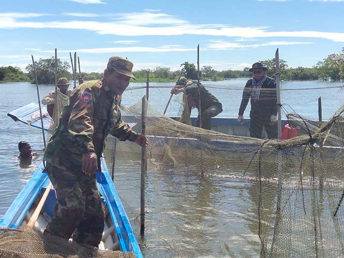 កំពង់ធំ .នៅថ្ងៃចុងសប្តាហ៍នេះ ក្រុមការងារប្រចាំការអនុវត្តបទបញ្ជាទប់ស្កាត់ និងបង្ក្រាបបទល្មើសនេសាទបឹងទន្លេសាប ឈរជើងនៅចំណុច ស្រុកកំពង់ស្វាយ ខេត្តកំពង់ធំ។ ដឹកនាំដោយលោកឧត្តមសេនីយ៍ត្រី វ៉ា ចាន់កុសល ស្នងការរង និងជាប្រធានក្រុមការងារ ព្រមទាំងសហការរី បានចេញប្រតិបត្តិការល្បាតបង្រ្កាបបទល្មើសនេសាទនៅចំណុច ក្រោយវត្តកំពង់ចម្លង ទួលតាទី និងបឹងកំភ្លាញតូច ក្នុងភូមិសាស្ត្រឃុំផាត់សណ្តាយ ស្រុកកំពង់ស្វាយ ខេត្តកំពង់ធំ ។