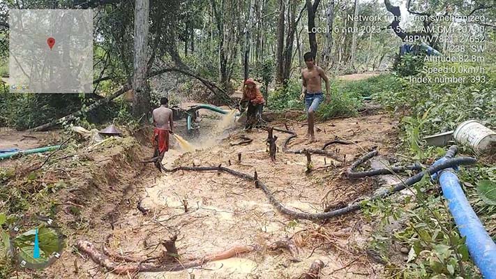 ក្រចេះ៖ រណ្ដៅរ៉ែនៅតំបន់នោះមានប្រមាណជា១០០ រណ្តៅឯណោះ កំពុងធ្វើសកម្មភាពយ៉ាងគក្រឹកគគ្រេងនៅ ក្នុងដែនជម្រក សត្វព្រៃឡង់ ចំណុចភូមិឧបសម្ព័ន្ធ សោមឌីប៉ូ ឃុំកំពង់ចាម ស្រុកសំបូរ ខេត្តក្រចេះ ប៉ុន្តែ មិនមានលក្ខណៈទ្រង់ទ្រាយធំនោះទេ គឺ ប្រជាពលរដ្ឋធ្វើលក្ខណៈគ្រួសារសម្រាប់ដោះស្រាយជីវភាពប្រចាំថ្ងៃ ដោយជួលរណ្តៅដីរ៉ែមាសពីអ្នកមានអំណាច ហើយបង់ប្រាក់៦០ម៉ឺនរៀលក្នុង១រណ្តៅ ទៅឲ្យមេភូមិដែលជាអ្នកទទួលខុសត្រូវតំបន់នោះ ។ប្រភពដដែលបានឲ្យដឹងទៀតថា បើទោះជា ការធ្វើអជីវកម្មរ៉ែមាសនេះលក្ខណៈគ្រួសារនៅក្នុងមួយរណ្ដៅត្រូវចំណាយប្រាក់៦០ ម៉ឺនរៀល បង់ឲ្យទៅមន្ត្រីបរិស្ថានដែលស្ថិតនៅក្រោមការគ្រប់គ្រងរបស់លោក សាំង សាខន នាយកដានជម្រកសត្វ ព្រៃឡង់ ហើយគេតម្រូវឲ្យមានការចុះ បញ្ជីឈ្មោះត្រឹមត្រូវហើយបង់លុយសិន ទើបអនុញ្ញាត ឱ្យដំណើរ ការរុករកមាសបាន។ ប៉ុន្តែ ប្រសិនមិនបានចុះបញ្ជីឈ្មោះត្រឹមត្រូវពីអាជ្ញាធរភូមិទេ មន្ត្រីបរិស្ថាននិងដើរពិនិត្យហើយចាប់បង្ក្រាបយកម៉ាស៊ីនបូមទឹករួមនិងឧបករណ៍ប្រើប្រាស់ទាំងនោះទៅដុតកម្ទេចចោល ។