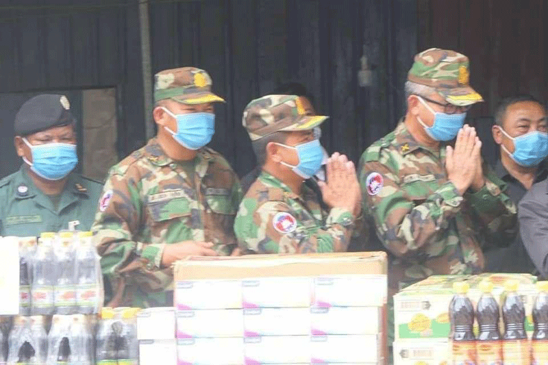 បន្ទាយមានជ័យៈ នៅព្រឹកថ្ងៃទី៦ ខែមីនា ឆ្នាំ២០២១ លោកឧត្តមសេនីយ៍ត្រី សឹង្ហ ទុំ មេបញ្ជាការ កងពលតូចថ្មើរជើងលេខ៥១ បានអញ្ជើញទទួល អំណោយ ឧបត្ថម្ភ ពីសំណាក់ ឯកឧត្តម ចៅ ជីអាន ប្រធានក្រុមចលនាយុវជនកម្ពុជា ក១៥៧ សាខាខេត្តបន្ទាយមានជ័យ តំណាង ឯកឧត្តម ម៉ឹង ពន្លក ប្រធានចលនាយុវជនកម្ពុជាក១៥៧ដែលបាននាំយកអំណោយផ្តល់ជូនកងកម្លាំងជួរមុខរបស់អង្គភាពកងពលតូចថ្មើរជើងលេខ៥១ដែលកំពុងឈរជើងសហការជាមួយកងកម្លាំងចម្រុះនៅតាមបន្ទាត់ព្រំដែនកម្ពុជាថៃខេត្តបន្ទាយមានជ័យដើម្បីចូលរួមទប់ស្កាត់ពលករលួចឆ្លងដែនចូលមកដោយមិនបានធ្វើចត្តាឡីស័ក តាមការណែនាំរបស់ក្រសួងសុខាភិបាល កុំឲ្យមានការឆ្លងរីករាលដាលជំងឺឆ្លងកូវីដ-១៩ ចូលក្នុងសហគមន៍។សូមជម្រាបថា៖ អំណោយដែលបានឧបត្ថម្ភរួមមាន៖ទឹកបរិសុទ្ធចំនួន ២១០យួរ ,ទឹកផ្លែឈើ ចំនួន ២៤យួរ ,ភេសជ្ជ:បាកាសចំនួន ១កេស ,M150 ចំនួន ១កេស ,ទឹកស៊ីអ៊ីវចំនួន ៣០យួរ ,ទឹកត្រី ចំនួន ៣០យួរ ,មីចំនួន ៥០កេសតូច ,ត្រីខកំប៉ុងចំនួន ៥កេស ,ស្ករសចំនួន ២០គីឡូក្រាម ,អំបិលចំនួន គីឡូក្រាម ,ម៉ាស់ចំនួន ៤០ប្រអប់ និងអាល់កុលចំនួន ៦០លីត្រ។