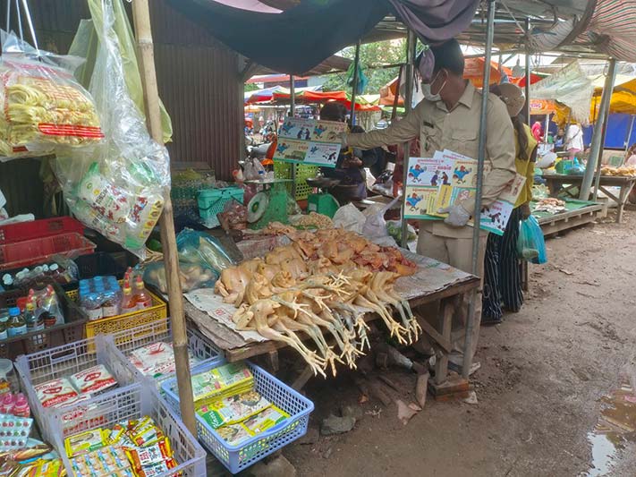 ចំពោះ ការផ្សព្វផ្សាយគឺបានណែនាំដល់ អាជីវករ អ្នកលក់សាច់សត្វ លក់ស៊ុតសត្វ អ្នកពិឃាតសត្វអ្នកចិញ្ចឹមសត្វ ចែកខិតប័ណ្ណ ព្រមទាំងធ្វើជីវៈសុវត្ថិភាពដើម្បីការពារជំងឺផ្តាសសាយបក្សីនៅកន្លែងទិញលក់កន្លែងស្តុបនិងកន្លែងពិឃាតបក្សីចំនួន ៣៩កន្លែង។