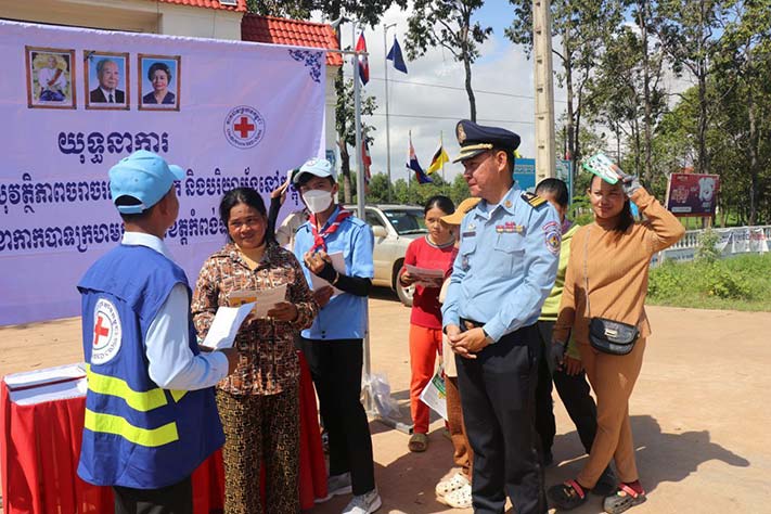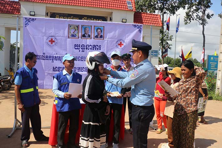 កំពង់ធំ.នៅព្រឹកថ្ងៃទី១១ ខែតុលា ឆ្នាំ២០២៣ ដោយមានការយកចិត្ត្តទុកដាក់ពី ឯកឧត្ដម ងួន រតន: ជាប្រធានគណៈកម្មាធិការសាខាកាកបាទក្រហមកម្ពុជាខេត្តកំពង់ធំ បានឱ្យក្រុមប្រតិបត្តិសាខា ដឹកនាំដោយលោក លោក កែវ ផល នាយកសាខា សហការជាមួយមន្ទីរសាធារណ:ការ និងដឹកជញ្ជូនខេត្ត ស្នងការដ្ឋាននគរបាល ឣង្គការបង្ការរបួសឣាស៊ី ដឹកនាំអ្នកស្ម័គ្រចិត្ត យុវជនកាកបាទក្រហម យុវជនកាយរិទ្ធ ចុះធ្វើយុទ្ធានាការអប់រំផ្សព្វផ្សាយស្ដីពីការលើកកម្ពស់សុវត្ថិភាពចរាចរណ៍ផ្លូវគោក និងបរិយាបន្ន នាឱកាសពិធីបុណ្យភ្ជុំបិណ្ឌប្រពៃណីជាតិខ្មែរ នៅចំណុចមុខវិទ្យាល័យស្ទឹងសែន ស្ថិតក្នុងសង្កាត់ស្រយ៉ូវ ក្រុងស្ទឹងសែន ។