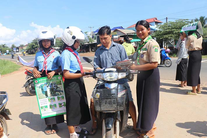 ប័ណ្ណអ្វីដែលអ្នកបើកបរត្រូវដឹងចំនួន១៥០សន្លឹក សេចក្តីអំពាវនាវ ស្តីពីការបង្ការ ទប់ស្កាត់គ្រោះថ្នាក់ចរាចរណ៍ផ្លូវគោកចំនួន១៥០សន្លឹក ស្ទិកគ័រចំណាំងផ្លាតចំនួន១៥០សន្លឹក ផ្តល់ខិត្តប័ណ្ណរបៀបពាក់មួកសុវត្ថិភាពចំនួន១២០សន្លឹកខិត្តប័ណ្ណលើកកម្ពស់សិទ្ធជនពិការចំនួន១៣៥សន្លឹកនិងស្ទិកគ័រចំណាំងផ្លាតចំនួន១៥០សន្លឹក។