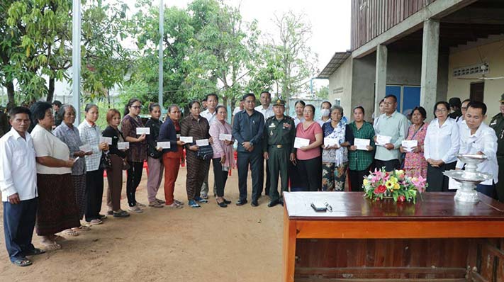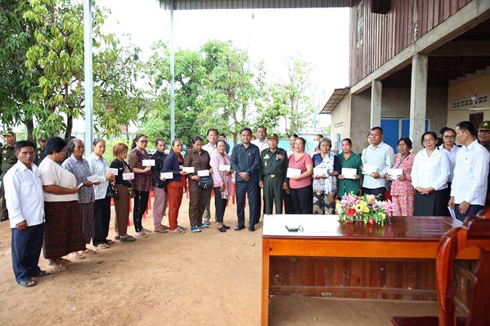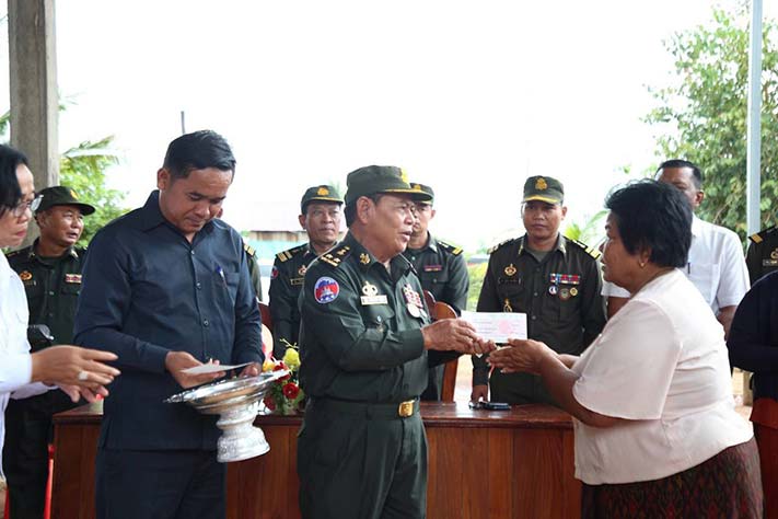 កំពង់ធំ. នៅរសៀលថ្ងៃទី១៦ ខែតុលា ឆ្នាំ២០២៣ ឧត្តមសេនីយ៍ទោ សោម ស៊ុន ប្រធានសមាគមអតីតយុទ្ធជនកម្ពុជា ខេត្តកំពង់ធំ រួមជាមួយនឹងថ្នាក់ដឹកនាំ នៃមន្ទីរសង្គមកិច្ចអតីតយុទ្ធជន និងយុវនីតិសម្បទាខេត្តកំពង់ធំ បាននាំយកថវិកាធានារ៉ាប់រងសង្គម ចំនួនជាង១១០.៧៤៦.៦៨០រៀល ទៅប្រគល់ជូនគ្រួសារសពអតីតយុទ្ធជនពលីចំនួន១៤គ្រួសារ រស់នៅតាម បណ្តាក្រុង-ស្រុក ក្នុងខេត្តកំពង់ធំ ដែលពិធីនេះប្រព្រឹត្តទៅនៅគេហដ្ឋានគ្រួសារសពឈ្មោះ សំ ឡែម នៅភូមិក្រចាប់ សង្កាត់អាចារ្យលាក់ ក្រុងស្ទឹងសែន ខេត្តកំពង់ធំ ។