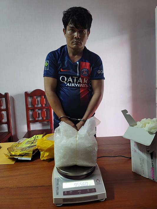 ជនសង្ស័យម្នាក់ ត្រូវបានកម្លាំងអាវុធហត្ថខេត្តតាកែវ សហការជាមួយកម្លាំងអាវុធហត្ថស្រុកសំរោង ឃាត់ខ្លួនដកហូតបានថ្នាំញៀនជិត ១គីឡូក្រាម និងដកហូតបានវត្ថុតាងមួយចំនួន។