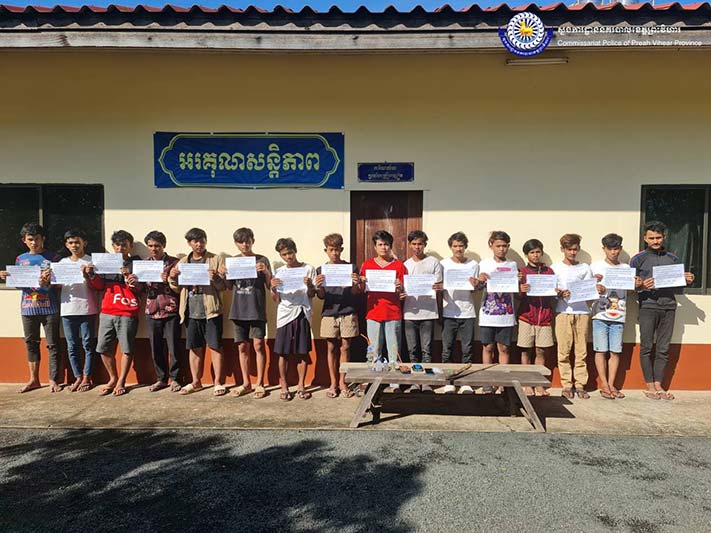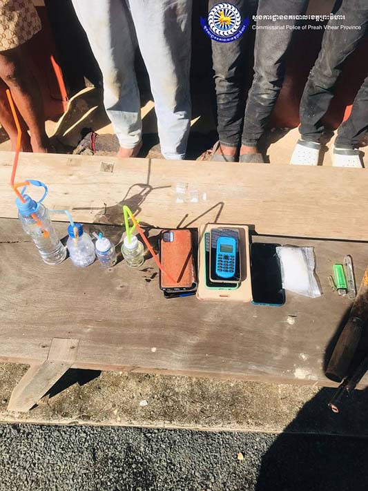 ព្រះវិហារ៖ក្រោមការចង្អុលដឹកនាំពីលោកឧត្តមសេនីយ៍ទោ សួស សុខដារ៉ា ស្នងការនគរបាលខេត្តព្រះវិហារ កាលពីថ្ងៃទី៣០ ខែវិច្ឆិកា ឆ្នាំ២០២៣ កម្លាំងជំនាញនៃស្នងការដ្ឋាននគរបាលខេត្តព្រះវិហារ សហការជាកម្លាំងអធិការដ្ឋាននគរបាលក្រុងព្រះវិហារ និងអធិការដ្ឋាននគរបាលស្រុកជាំក្សាន្ត បានធ្វើការចុះស្រាវជ្រាវស៊ើបអង្កេតបំបែកសំបុកក្រុមក្មេងញៀនថ្នាំ និងអ្នកជួញដូរចែកចាយគ្រឿងញៀនខុសច្បាប់ បានធ្វើការឃាត់ខ្លួន យុវជនប្រុសស្រីចំនួន ២២នាក់ (ស្រីចំនួន ០២នាក់) ស្ថិតនៅភូមិភារកិច្ច ក្រុងព្រះវិហារ និងស្រុកជាំក្សាន្ត ដកហូតវត្ថុតាងរួមមាន ៖ក្រាមពណ៌សថ្លាសង្ស័យជាសារធាតុញៀនចំនួន ១៥កញ្ចប់,ម៉ូតូចំនួន ០៧គ្រឿង,ទូរស័ព្ទ ១៣គ្រឿង និងសម្ភារវេចខ្ចប់ និងប្រើប្រាស់គ្រឿងញៀនមួយចំនួនទៀត។