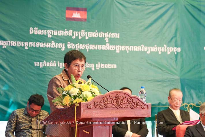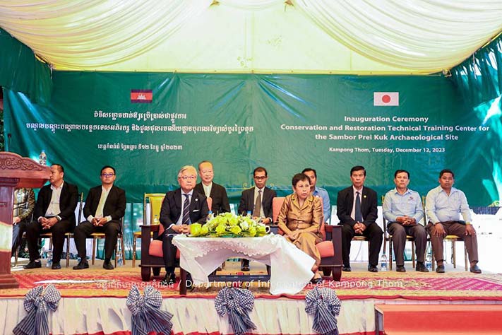 កំពង់ធំ.នៅព្រឹកថ្ងៃទី១២ ខែធ្នូ ឆ្នាំ២០២៣លោកជំទាវបណ្ឌិតសភាចារ្យ ភឿង សកុណា រដ្ឋមន្ត្រីក្រសួងវប្បធម៌ និងវិចិត្រសិល្បៈ ឯកឧត្តម អូអិណុ អាត់ស៊ូស៊ី ឯកអគ្គរាជទូតជប៉ុនប្រចាំនៅព្រះរាជាណាចក្រកម្ពុជា លោកសាស្ត្រាចារ្យ Nakagawa Takeshi ប្រធានគម្រោងអភិរក្សសំបូរព្រៃគុក នៃសាកលវិទ្យាល័យវាសេដា បានអញ្ជើញក្នុងពិធីសម្ពោធដាក់ឱ្យប្រើប្រាស់ជាផ្លូវការ មណ្ឌលបណ្ដុះបណ្ដាលបច្ចេកទេសអភិរក្ស និងជួសជុលរមណីយដ្ឋានបុរាណវិទ្យាសំបូរព្រៃគុក នៅសារមន្ទីរខេត្តកំពង់ធំ។