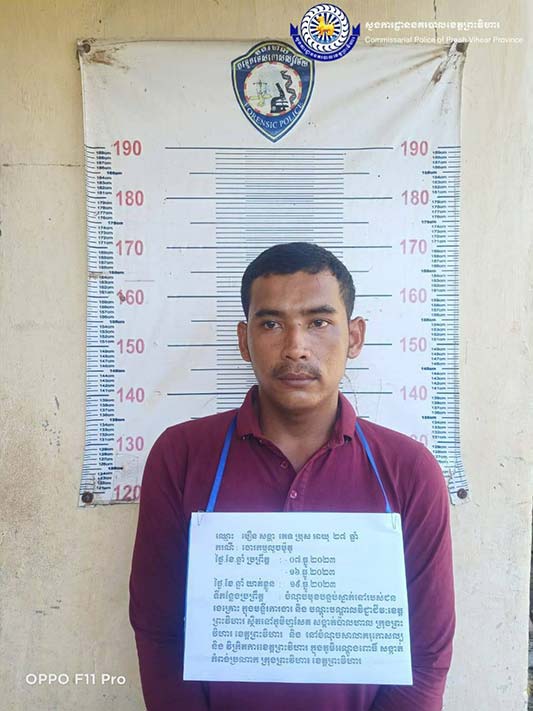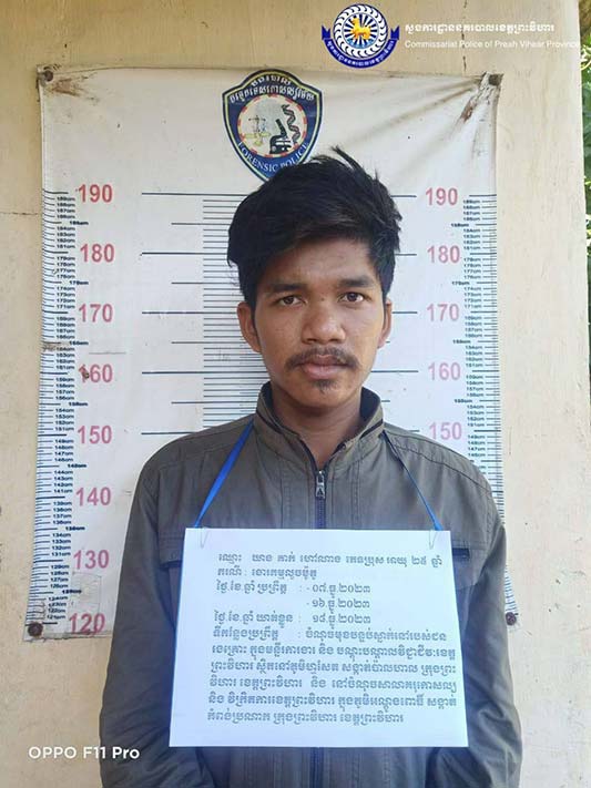ព្រះវិហារ៖ កម្លាំងជំនាញការិយាល័យព្រហ្មទណ្ឌកំរិតស្រាលនៃស្នងការដ្ឋាននគរបាលខេត្តបានសហការជាមួយកម្លាំងអធិការដ្ឋាននគរបាលក្រុងព្រះវិហារបានធ្វើកាស៊ើបអង្កេតមុខសញ្ញាបក្ខពួកជនសង្ស័យដែលជាមុខសញ្ញាលួច ដែលបានឆ្លងដែនមកពីខេត្តព្រៃវែងមកលាក់ខ្លួនពួនសំងំធ្វើសកម្មភាពនៅក្នុងភូមិសាស្ត្រនៃខេត្តព្រះវិហារ។