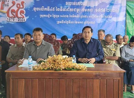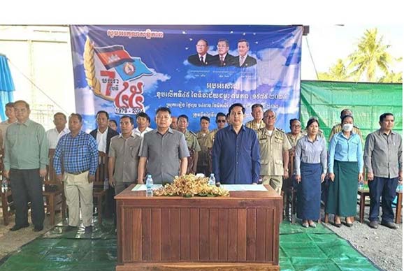 កាថ្លែងរបស់លោក អ៊ុក គឹមសាន ក្នុងឱកាសដែលលោកអញ្ជើញចូលរួម ក្នុងអង្គមីទ្ទីងអបអរសាទរខួបអនុស្សាវរីយ៍លើកទី៤៥ នៃទិវាជ័យជម្នះ ៧មករា (៧ មករា ១៩៧៩-៧ មករា ២០២៤) នៅស្រុករវៀង ខេត្តព្រះវិហារ ដោយមានការចូលរួមពីលោក យឹមបញ្ញា អភិបាលរងខេត្តព្រះវិហារ និងជាអនុប្រធានក្រុមការងារខេត្តចុះជួយស្រុករវៀង លោក ហោ ប៊ុនហួរ អភិបាលស្រុករវៀង ព្រមទាំងក្រុមការងារថ្នាក់ខេត្ត ស្រុក ឃុំ មន្ត្រីរាជការ កងកម្លាំងប្រដាប់អាវុធទាំង៣ លោកគ្រូ អ្នកគ្រូ សិស្សានុសិស្ស និងប្រជាពលរដ្ឋជាច្រើនទៀត នាព្រឹកថ្ងៃទី១០ ខែមករា ឆ្នាំ២០២៤។