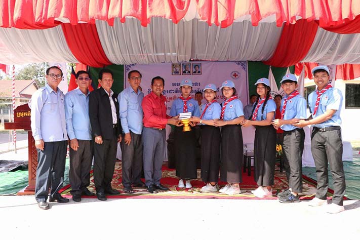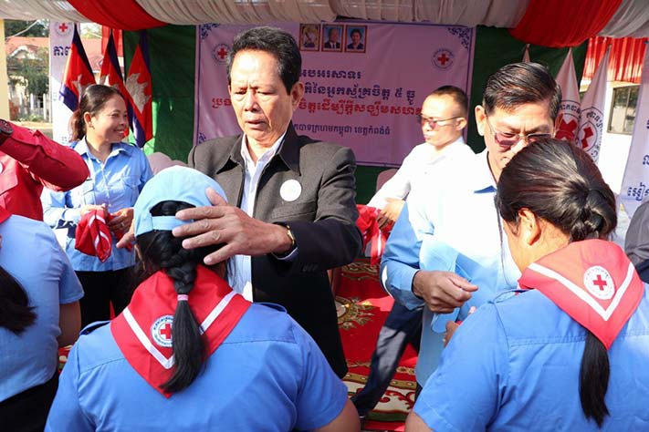 នាឱកាសនោះដែរ គណៈអធិបតីបានបំពាក់កន្សែងដល់យុវជនកាកបាទក្រហមកម្ពុជា ស្រុកកំពង់ស្វាយ ចំនួន៥៤នាក់ និងផ្ដល់សម្ភារៈសិក្សាមួយចំនួនដល់យុវជន ព្រមទាំងប្រគល់វិញ្ញាបនបត្រដល់អ្នកស្ម័គ្រចិត្តផងដែរ៕