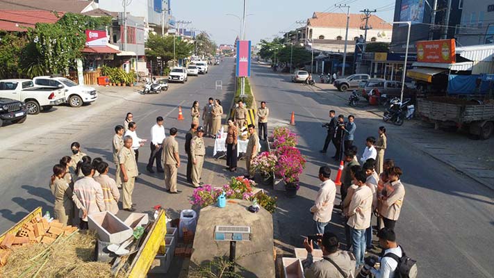 ខេត្តប៉ៃលិន ៖ នៅព្រឹកថ្ងៃទី១៨ ខែមករា ឆ្នាំ២០២៤ លោកជំទាវ បាន ស្រីមុំ អភិបាល នៃគណៈអភិបាលខេត្តប៉ៃលិន អមដំណើរដោយក្រុមការងារ បានអញ្ជើញចុះពិនិត្យមើលការកែសម្រួលសួនពុះចែកទ្រូងផ្លូវ នៅលើដងផ្លូវជាតិ លេខ៥៧ ដើម្បីបញ្ជាសគ្រោះថ្នាក់ចរាចរណ៍ និងលើកកម្ពស់សោភ័ណភាពក្នុងទីរួមខេត្ត។