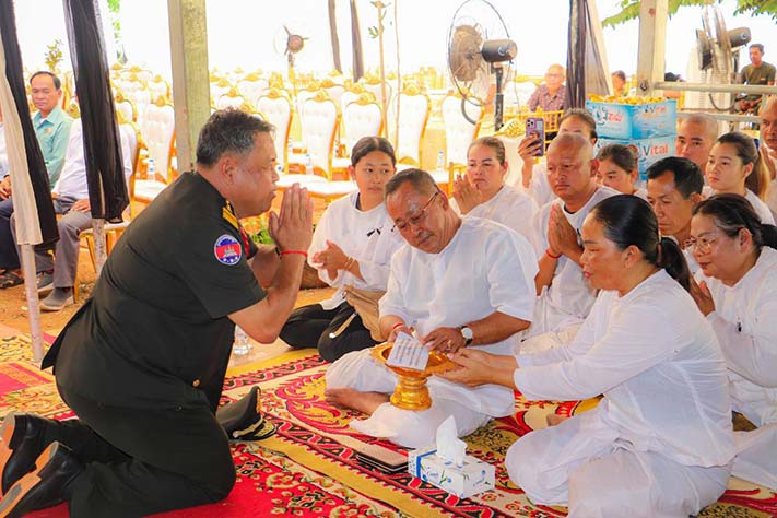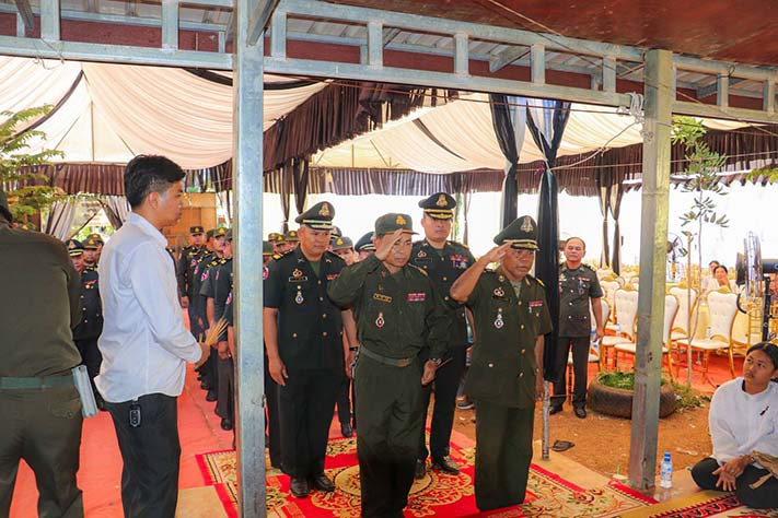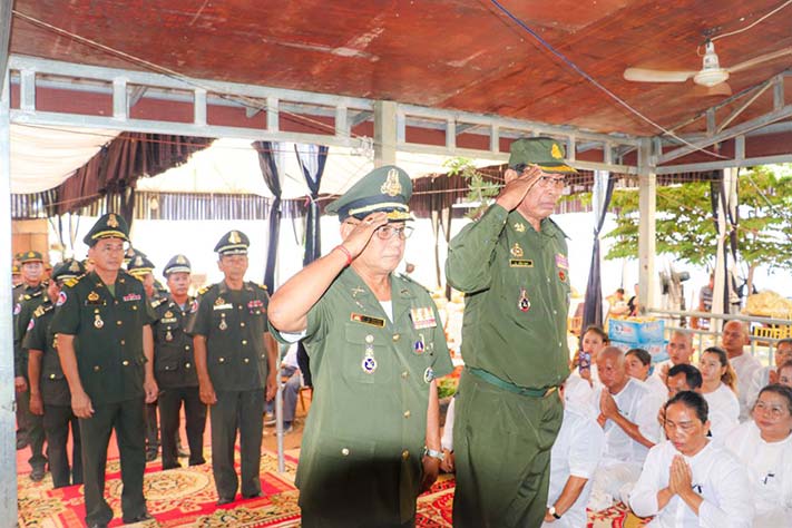 ព្រះវិហារ៖ នារសៀលថ្ងៃទី ២៤ ខែមករា ឆ្នាំ២០២៤ លោកវរសេនីយ៍ឯក ម៉ៅសុវណ្ណ មេបញ្ជាការរង នាយសេនាធិការតំបន់ប្រតិបត្តិការសឹករងព្រះវិហារ ដែលបានអញ្ជើញ ដឹកនាំនាយទាហាន នាយទាហានរង និងពលទាហានចូលរួមរំលែកទុក្ខដល់គ្រួសារនៃសព និងគោរពវិញ្ញាណក្ខន្ធសពលោកតាឧបាសក កឹម សឿន ដែលបានទទួលមរណភាព នៅថ្ងៃទី ២២ ខែមករា ឆ្នាំ២០២៤ វេលាម៉ោង ៩ .១៩នាទីយប់ ដោយជរាពាធ ស្ថិតនៅភូមិទួលខ្វាវ ឃុំបឹងណាយ ស្រុកព្រៃឈរ ខេត្តកំពង់ចាម ។