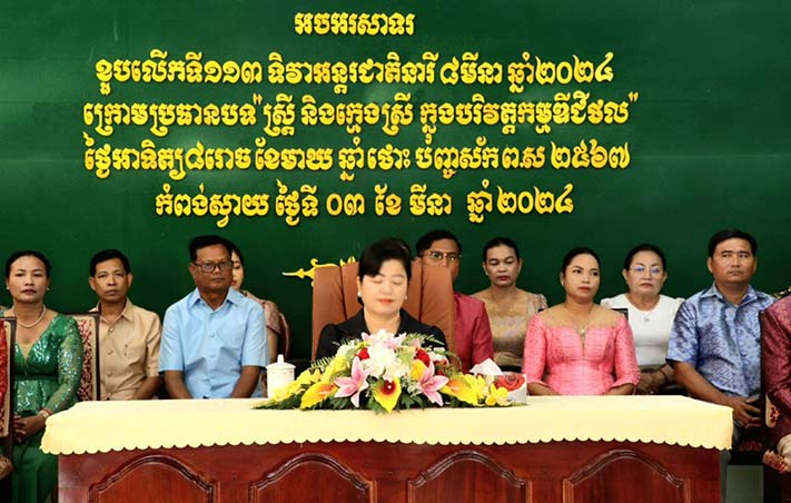 សម្រាប់កម្ពុជា សិទ្ធិនារី ត្រូវបានរដ្ឋាភិបាលកម្ពុជាតាំងពីក្រោយការរំដោះ៧មករា ឆ្នា១៩៧៩មក បានបន្តយកចិត្តទុកដាក់ខ្ពស់ជាបន្តបន្ទាប់រហូតដល់អាណត្តិទី៧នេះ ខណៈដែលស្ត្រីបានដើរតួនាទីយ៉ាងសំខាន់ក្នុងការជួយជ្រោមជ្រែងសេដ្ឋកិច្ច និងការអភិវឌ្ឍសង្គមដែលធ្វើឱ្យកម្ពុជារីកចម្រើនដូចសព្វថ្ងៃ។ លោកជំទាវ ឃួន ឃុនឌី ជំរុញឲ្យឃុំទាំងអស់រៀបចំធ្វើទិវាសិទ្ធិនារីនៅតាមបណ្ដាឃុំដើម្បីលើកកម្ពស់ការយកចិត្តទុកដាក់ទៅដល់ស្ត្រីពិសេសទឹកចិត្តដល់មេភូមិ សមាជិកភូមិ នារីភូមិរបស់យើង។សំបូរ.កំពង់ធំ.