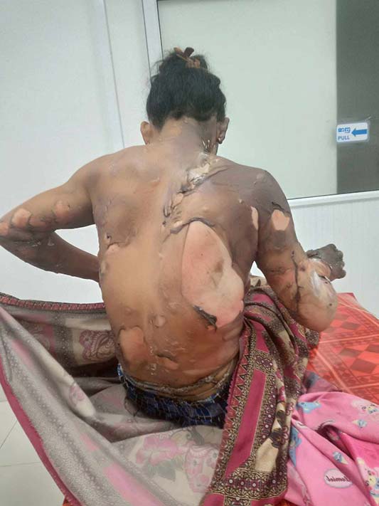 កេះដុតតែម្តងបណ្ដាលឲ្យឆេះរលាកពេញខ្លួនត្រូវបានក្រុមគ្រួសារ បញ្ជូនទៅសង្គ្រោះព្យាបាលនៅមន្ទីរពេទ្យបង្អែកខេត្តក្រចេះភ្លាមៗដែរ ។