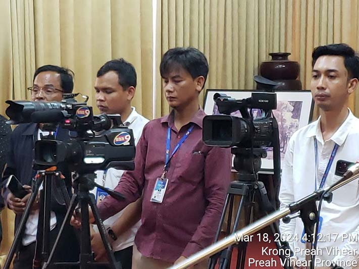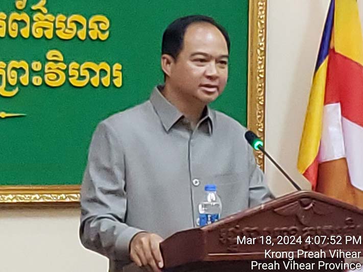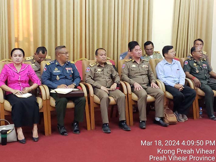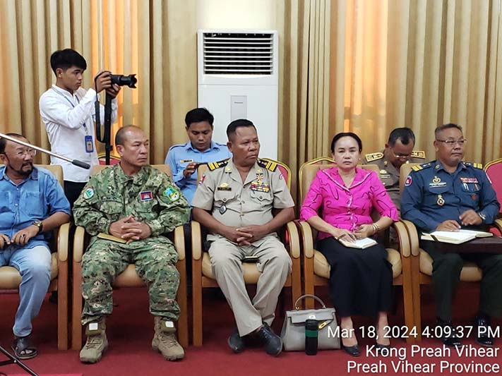 ព្រះវិហារ÷ នារសៀលថ្ងៃទី១៨ ខែមីនា ឆ្នាំ២០២៤ រដ្ឋបាលខេត្តព្រះវិហារ បានបើកសន្និសីទសារព័ត៌មាន ស្ដីពីការចុះអនុវត្តវិធានការផ្លូវច្បាប់ក្នុងការការពារដីរដ្ឋដែលបានចុះបញ្ជីរួច និងប្រគល់សិទ្ធវិនិយោគទៅអោយក្រុមហ៊ុន សីលាដាម៉ិច ខូអិលធីឌី ស្ថិតក្នុងភូមិសាស្ដ្រឃុំស្រយង់ និងឃុំភ្នំ ត្បែងពីរ ស្រុកគូលែន ខេត្តព្រះវិហារ។