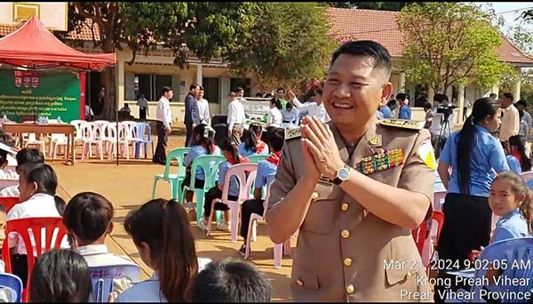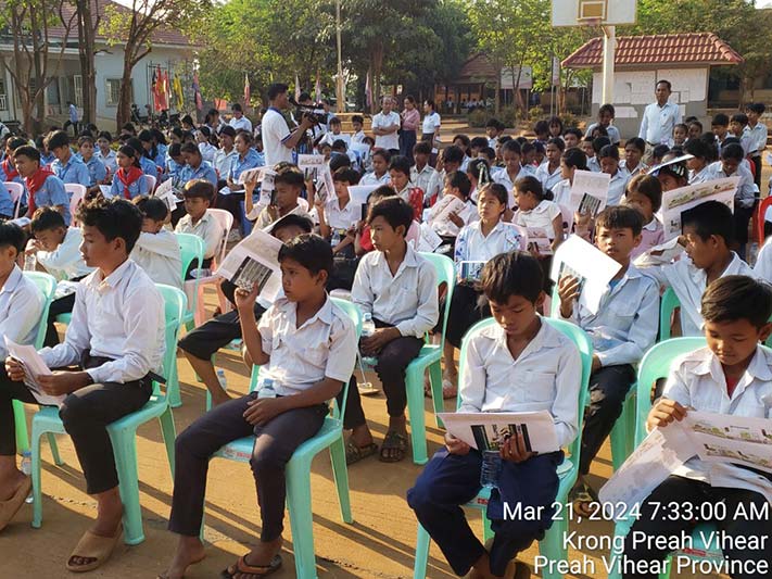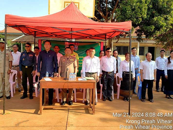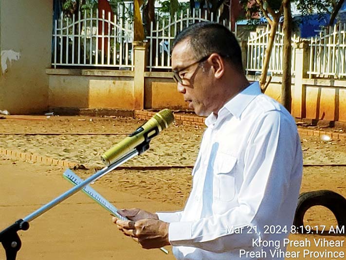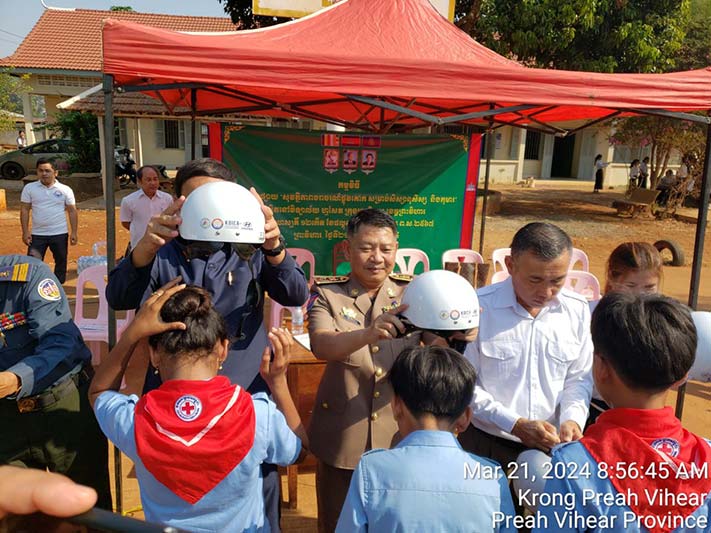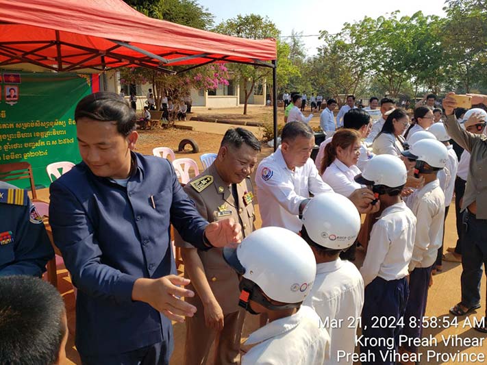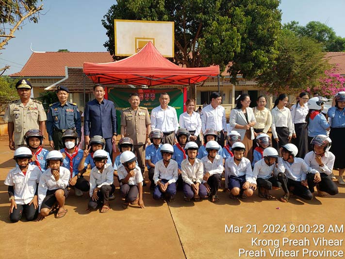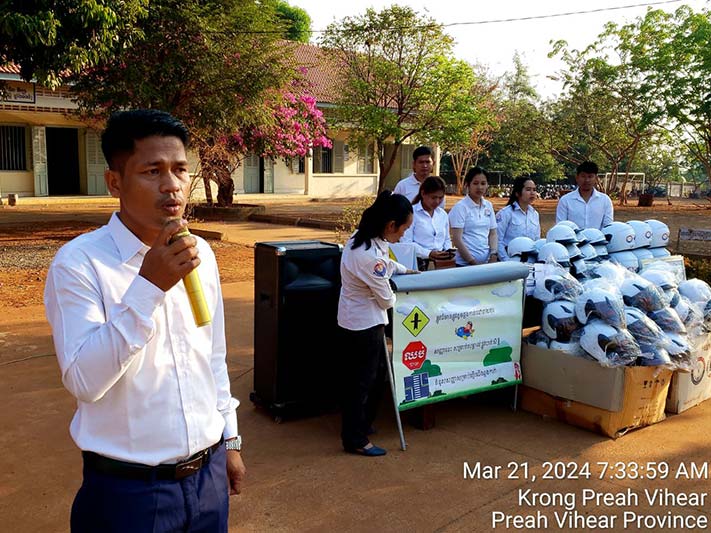 ក្នុងនាមលោក គីម រិទ្ធី អភិបាលខេត្តព្រះវិហារ, លោក អ៊ុក គឹមសាន បានថ្លែងណែនាំដល់ប្អូនៗសិស្សានុសិស្ស ត្រូវចូលរួមគោរពច្បាប់ចរាចរណ៍ផ្លូវគោកទាំងអស់គ្នា ដោយមិនត្រូវបើកបរលើសល្បឿនកំណត់ ត្រូវពាក់មួកសុវត្ថិភាពរាល់ពេលបើកបរម៉ូតូ ពិសេសរាល់ពេលធ្វើដំណើរតាមដងផ្លូវ ត្រូវប្រុងប្រយ័ត្ន មើលឆ្វេង មើលស្តាំ មុននឹងឆ្លងកាត់ផ្លូវ។