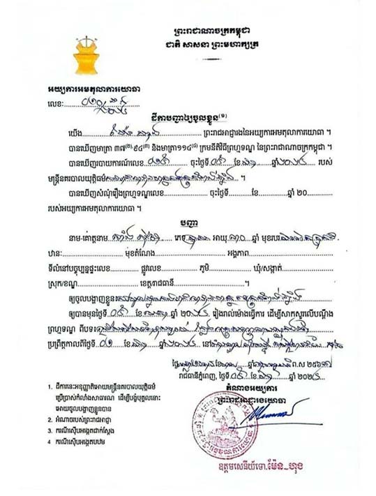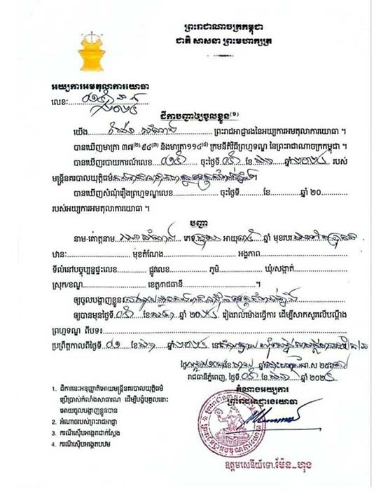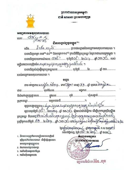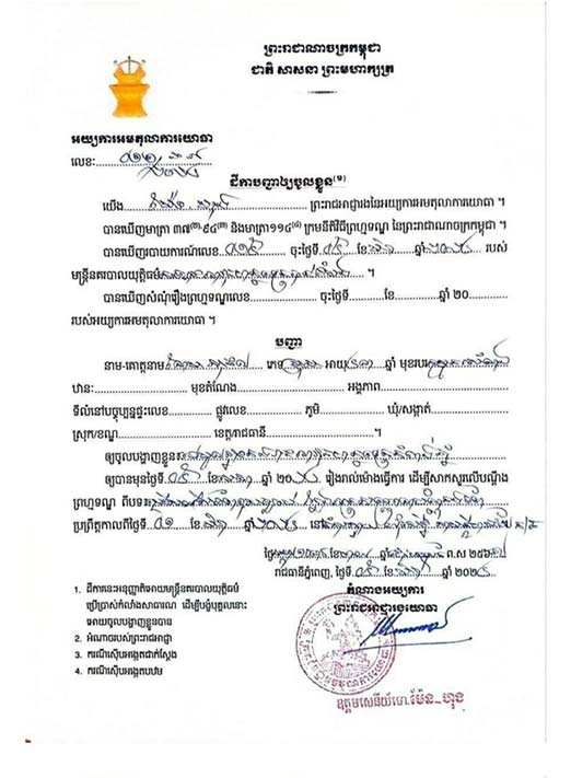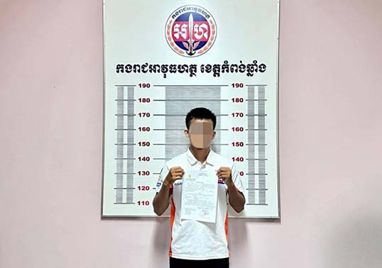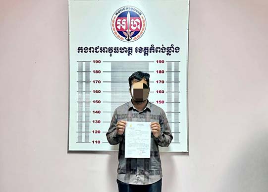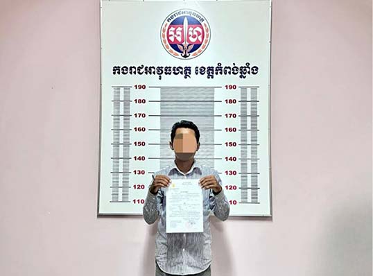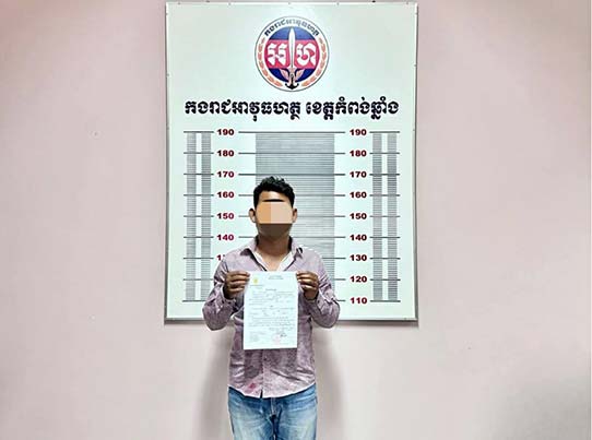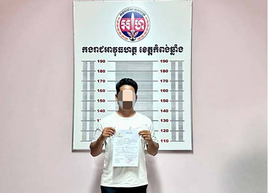 កំពង់ឆ្នាំង៖ កម្លាំងអាវុធហត្ថខេត្តកំពង់ឆ្នាំង ក្រោមការបញ្ជារបស់នាយឧត្តមសេនីយ៍ សៅ សុខា អគ្គមេបញ្ជាការរងកងយោធពលខេមភូមិន្ទ និងជាមេបញ្ជាការកងរាជអាវុធហត្ថលើផ្ទៃប្រទេស កាលពីថ្ងៃទី២១ ខែមីនា ឆ្នាំ២០២៤ បានអនុវត្តតាមដីការរបស់អយ្យការអមតុលាការយោធាឈានដល់ការចាប់ខ្លួនមនុស្ស៥នាក់ នៅស្រុកសាមគ្គីមានជ័យ ពាក់ព័ន្ធការជ្រើសរើសកងទ័ពខុសច្បាប់ និងក្លែងអត្តសញ្ញាណប័ណ្ណកងទ័ព។