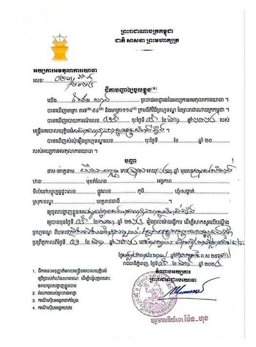 ជនត្រូវចោទចំនួន៥នាក់ រួមមាន៖ ១,ឈ្មោះ ណែម សុផល អាយុ៤៣ឆ្នាំ រស់នៅភូមិចំការស្វាយ ឃុំសេដ្ឋី ស្រុកសាមគ្គីមានជ័យ ខេត្តកំពង់ឆ្នាំង មុខរបរកសិករ ២,ឈ្មោះ អន សំណាង អាយុ៣២ឆ្នាំ រស់នៅភូមិចំការស្វាយ ឃុំសេដ្ឋី ស្រុកសាមគ្គីមានជ័យ ខេត្តកំពង់ឆ្នាំង មុខរបរលក់ដីឡូត៍ ៣,ឈ្មោះ ហឿន សីហា អាយុ២១ឆ្នាំ រស់នៅភូមិចំការស្វាយ ឃុំសេដ្ឋី ស្រុកសាមគ្គីមានជ័យ ខេត្តកំពង់ឆ្នាំង មុខរបរនិស្សិត ៤,ឈ្មោះ សាំង ស៊ីថា អាយុ៣១ឆ្នាំ រស់នៅភូមិចំការស្វាយ ឃុំសេដ្ឋី ស្រុកសាមគ្គីមានជ័យ ខេត្តកំពង់ឆ្នាំង មុខរបរកសិករ និង៥,ឈ្មោះ យឹម យុទ្ធ អាយុ៣៣ឆ្នាំ រស់នៅភូមិចំការស្វាយ ឃុំសេដ្ឋី ស្រុកសាមគ្គីមានជ័យ ខេត្តកំពង់ឆ្នាំង មុខរបរជាងម៉ូតូ។
