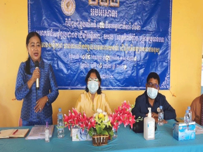 ខេត្តកំពង់ឆ្នាំង :សមាគមន៍សម្ព័នប្រជាជនដើម្បីសន្តិភាព ខេត្តកំពង់ឆ្នាំង ត្រូវបានគេមើលឃើញថា នៅថ្ងៃទី៨ ខែមិនា ឆ្នាំ២០២១ ម្សិលមិញបានរៀបចំធ្វើពិធីប្រារពខួបអនុស្សាវរីយ៍លើកទី១១០ ទិវាអន្តរជាតិនារី ៨ មិនា នៅទីតាំង៣កន្លែង នៅក្នុងឃុំចំនួន៣ នឌស្រុករលាប្អៀរ គឺឃុំពង្រ ឃុំស្វាយជ្រុំ និងឃុំជ្រៃបាក់ ។ អនុប្រធានសម្ព័នប្រជាជនដើម្បីសន្តិភាព និងជាប្រធានសម្ព័ន ប្រជាជនដើម្បីសន្តិភាព សាខាខេត្តកំពង់ឆ្នាំងលោកជំទាវ គ្រីសារ៉ន មានប្រសាសន៍ថា៖ ការដែលរៀបចំធ្វើពិធីប្រារពខួបអនុស្សាវរីយ៍លើកទី១១០ ទិវាអន្តរជាតិនារី ៨ មិនា នៅឆ្នាំនេះ ជាលក្ខណៈ មិនទូលំទូលាយប៉ុន្មាននោះឡើយ ដោយត្រូវបានបំបែកគ្នាធ្វើជាក្រុមតូចៗនៅតាមឃុំ គឺក្នុងគោលបំណង ឱ្យការជួបជុំមានគម្លាតពីគ្នា តាមការនែនាំរបស់ក្រសួងសុខាភិបាល ក្នុងការកាត់បន្ថយការឆ្លងរីករាលដាល នៃជម្ងឺកូវីត ១៩ ហើយក៍ស្របតាម ប្រធានបទសិទ្ឋនារីឆ្នាំនេះ គឺ(ស្ត្រីនិងការអភិវឌ្ឍ ក្នុងបរិការណ៍កូវីដ-១៩) ផងដែរ ។ដើម្បីអបអរសារទដល់ទិវាសិទ្ឋនារី ថ្ងៃនេះផងដែរ ក្នុងនាម សមាគមន៍ សម្ពន័ប្រជាជនដើម្បីសន្តិភាព បានរៀបចំជួបជុំបងប្អូន ប្រជាពលរដ្ឋ នៅតាមបណ្តាឃុំមួយចំនួន ក្នុងស្រុករលាប្អៀរ ដើម្បីរិតចំណងសាមគ្គីភាព រវាងប្រជាពលរដ្ឋ និង (ស.ប.ស) ឱ្យកាន់តែទ្វេឡើងថែមទៀត និងជាចុងក្រោយសូមបងប្អូន រួបរួមសាមគ្គីគ្នា ដើម្បីការពារសុខសន្តិភាព ដែលកំពុងមានសព្វថ្ងៃ កុំ ឱ្យបាត់បង់ ព្រោះថា៖តម្លៃនៃសន្តិភាព នេះមិនអាចកាត់ថ្លៃបានទេ គឺបានដោយលំបាកខ្លាំងណាស់ ។