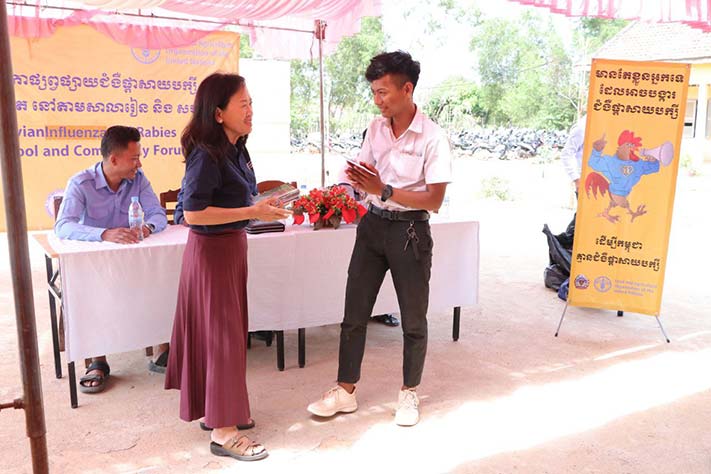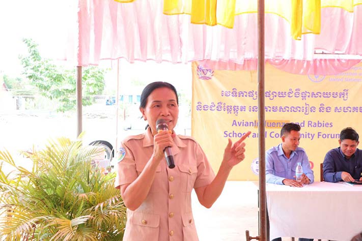 លោក នាយកវិទ្យាស្ថានស្រាវជ្រាវសុខភាពសត្វ ផលិតកម្មសត្វ និងក្រុមការងារវិទ្យាស្ថានស្រាវជ្រាវ សុខភាពសត្វ និងផលិតកម្មសត្វ នៃអគ្គនាយកដ្ឋានសុខភាពសត្វនិងផលិតកម្មសត្វ និងលោក ប្រធានការិយាល័យផលិតកម្ម និងបសុព្យាបាល នៃមន្ទីរកសិកម្ម រុក្ខាប្រមាញ់ និងនេសាទខេត្តកំពង់ធំ និងមន្រ្តីជំនាញចូលរួមវេទិការផ្សព្វផ្សាយ ស្ដីពីជំងឺផ្ដាសាយបក្សី និងជំងឺឆ្កែឆ្កួត នៅតាមសាលារៀន និងសហគមន៍ នៅក្នុងស្រុកស្ទោង ខេត្តកំពង់ធំ។ លោក ចាន់ បញ្ញាវ័ន្ត ប្រធានការិយាល័យផលិតកម្ម និងបសុព្យាបាល បានធ្វើការផ្សព្វផ្សាយពីជំងឺផ្ដាសាយបក្សីនៅអនុវិទ្យាល័យចំនួន៣. ១.អនុវិទ្យាល័យបេង ២.វិទ្យាល័យ ហ៊ុន សែន រុងរឿង ៣.អនុវិទ្យាល័លឹកជះសរុបមានសិស្យនិងអ្នកចូលរូមជិត៨០០នាក់។សម្រាប់នៅតាមមូលដ្ឋានមួយចំនួន មានបញ្ហាជំងឺឆ្លងដល់សត្វបក្សីជាច្រើន បានធ្វើឱ្យប៉ះពាល់ដល់សុខភាពមនុស្ស និងសត្វរ។ លោក ឡុង រិទ្ឋី នាយកវិទ្យាស្ថានស្រាវជ្រាវសុខភាពសត្វ និងផលិតកម្មសត្វ បានផ្ដាំផ្ញើដល់អ្នកចូលរួមទាំងអស់ ត្រូវយកចិត្តទុកដាក់ការពារឱ្យបានគ្រប់ៗគ្នា ប្រសិនបើមានបញ្ហាឃើញបក្សីមានជំងឺ ឬស្លាប់ សូមកុំយកទៅបរិភោគឱ្យសោះអាចប៉ះពាល់ដល់សុខភាព។ពេលឃើញមានសត្វស្លាប់ និងមានជំងឺសូមរាយការណ៍ទៅអាជ្ញាធរមូលដ្ឋាន និងភ្នាក់ងារសុខភាពសត្វភូមិ រាយការណ៍បន្តមកមន្ទីរកសិកម្ម រុក្ខាប្រមាញ់ និងនេសាទខេត្តហើយមន្ទីរនិងបញ្ជូនមន្ត្រីជំនាញចុះទៅដល់មូលដ្ឋាន ដើម្បីឱ្យគាត់ចុះទប់ស្កាត់ និងមានវិធានការការពារកុំឱ្យមានជំងឺឆ្លងទៅសត្វដ៍ទៃទៀត ឱ្យបានទាន់ពេលវេលា។