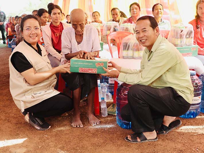 កំពង់ធំ៖នៅរសៀលថ្ងៃទី ២៧ខែឧសភាឆ្នាំ ២០២៤ លោក សាយ គឹមឡម នឹងលោកស្រីប្រធានអង្គការទស្សនពិភពលោកប្រចាំតំបន់ស្ទោង បានសំណេះសំណាលសួរសុខទុក្ខ និង ផ្តល់អំណោយជូនដល់គ្រួសារក្រីក្រនិងងាយរងហានិភ័យ ដែលបានរងគ្រោះដោយសារបម្រែបម្រួលអាកាសធាតុនិងភាពរាំងស្ងួតនៅឃុំចំណាក្រោម ស្រុកស្ទោង ខេត្តកំពង់ធំ។