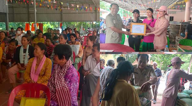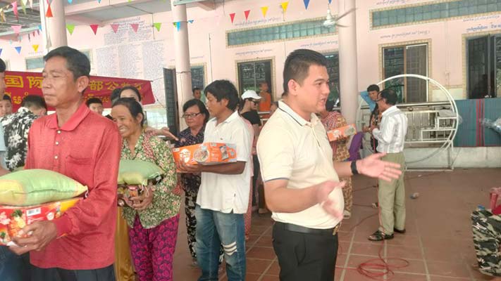 អំណោយដែលចែកជួនរួមមាន៖- អង្ករ ៥ គីឡូ ចំនួន ២០០ បាវ- មី ម៉ាម៉ា ចំនួន ២០០ កេស- ទឹកត្រី ២០០ ដប-ទឹកស៊ីអ៊ីវ ២០០ ដប- ខ្លាញ់ ២០០ ដប- ស្ករស ចំនួន ២០០ គីឡូ- អំបិល ចំនួន ២០០ គីឡូ