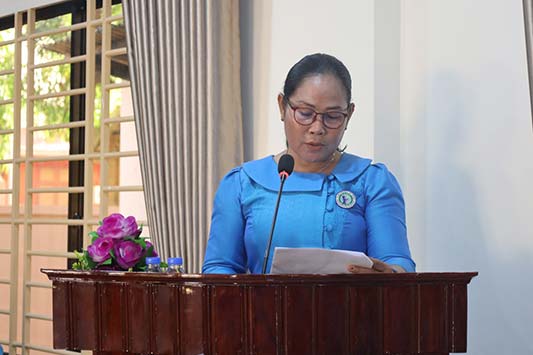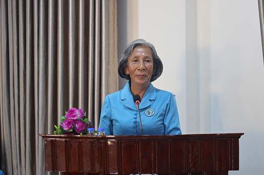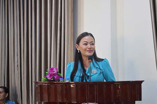 ជាមួយគ្នានេះដែរ លោកជំទាវ បានផ្តាំផ្ញើជូនដល់បងប្អូនស្ត្រីទាំងអស់ និងបងប្អូន ស្ត្រីនៅអនុសាខា សមាគមនារីប្រចាំវិទ្យាល័យ ដែលទទួលបាន សេចក្តីសម្រេចថ្មីនេះ ត្រូវចូលរួមអនុវត្តឱ្យបាននូវ ទិសដៅការងារជាប្រចាំរបស់សាខា និង អនុសាខាសមាគម នារី ចេះសាមគ្គីភាពគ្នា រក្សាផ្ទៃក្នុងឱ្យបានល្អ។ ត្រូវចេះបែងចែកតួនាទីភារកិច្ច និងការ ទទួលខុសត្រូវ។ បន្តខិតខំប្រឹងប្រែងពង្រឹង និងបង្កើនប្រសិទ្ធភាពដឹកនាំ កិច្ចសហការល្អ ជាមួយស្ថាប័នគ្រប់លំដាប់ថ្នាក់។ ត្រូវស្មោះត្រង់ និង រក្សាទំនាក់ទំនងជិតស្និតជាមួយប្រជា ពលរដ្ឋតាមរយៈការចុះមូល ដ្ឋានជាប់ជាប្រចាំជួបប្រជុំជាមួយ បងប្អូននារីដើម្បីអប់រំ ផ្សព្វផ្សាយ ពង្រឹងសតិអារម្មណ៍ ក្ដាប់ឱ្យបានជាប់នូវតម្រូវការរបស់ប្រជាពលរដ្ឋ និងរួមគ្នា ដោះស្រាយឱ្យទាន់ពេលវេលា នូវតម្រូវការចាំបាច់របស់ពួកគាត់។ ពង្រឹងសីលធម៌រស់នៅ ស្អាតស្អំ រក្សាប្រពៃណីល្អ និងសេចក្តីថ្លៃថ្នូររបស់ជាតិយើង ជាពិសេសតម្លៃស្ត្រី និងការថែ រក្សាការពារកិត្តិយស ស្ត្រីឱ្យបានស៊ីជម្រៅទៅតាមគោលនយោបាយ របស់ប្រមុខរាជរដ្ឋាភិ បាលកម្ពុជា ដែលទទួលស្គាល់ថា ស្ត្រីគឺជាឆ្អឹងខ្នងដ៏រឹងមាំ នៃសេដ្ឋកិច្ច និងសង្គមជាតិ របស់យើងទាំងអស់គ្នា”៕