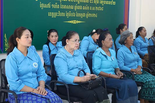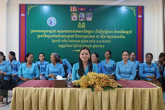 ព្រះវិហារ៖ នៅព្រឹកថ្ងៃទី ៦ ខែ កក្កដា ឆ្នាំ២០២៤ សមាគមនារី កម្ពុជាដើម្បី សន្តិភាពនិង អភិវឌ្ឍន៍.ខេត្ត ព្រះវិហារ បានរៀបចំ កម្មវិធីប្រកាសទទួលស្គាល់សមាសភាព អនុសាខា សមាគមនារីកម្ពុជាដើម្បីសន្តិភាព និងអភិវឌ្ឍន៍ប្រចាំវិទ្យាល័យចំណេះដឹងទូទៅ និងបច្ចេក ទេសជា ស៊ីមត្បែងមានជ័យ ក្រោមអធិបតីភាព លោកជំទាវ សុខា គងពិសី ប្រធាន កិត្តិយសសាខាសមាគមនារីកម្ពុជាដើម្បីសន្តិភាព និងអភិវឌ្ឍន៍ខេត្តព្រះវិហារ និងបាន ប្រព្រឹត្តទៅនៅអគារសាខាសមាគម នារីកម្ពុជាដើម្បីសន្តិភាព និងអភិវឌ្ឍន៍ខេត្ត ស្ថិតក្នុង សង្កាត់ កំពង់ប្រណាក ក្រុង ព្រះវិហារខេត្តព្រះវិហារ ដោយមានការចូលរួមពី សំណាក់ លោកជំទាវ លោកស្រី ជា អនុប្រធាន កិត្តិយស ប្រធាន អនុប្រធាន និងសមាជិក សមាគមនារីខេត្ត និង អនុសាខាសមាគម នារី ប្រចាំវិទ្យាល័យ ចំណេះដឹងទូទៅ និង បច្ចេកទេសជាស៊ីមត្បែងមានជ័យ ដែលបានប្រកាសបញ្ចូលថ្មី ជាច្រើនរូប។