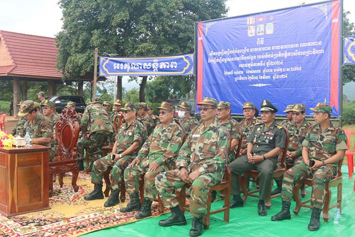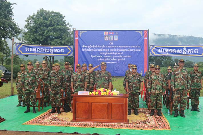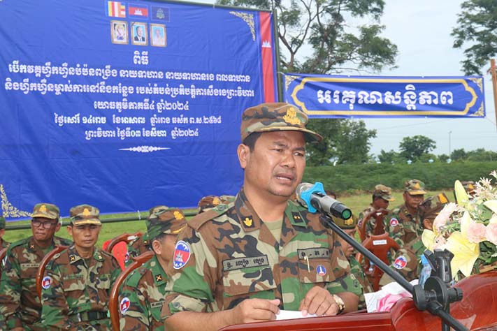 ព្រះវិហារ÷ នៅព្រឹកថ្ងៃ ទី៣ ខែសីហា ឆ្នាំ២០២៤ នៅទីបញ្ជាការកងវរៈសេនាតូចលេខ១ នៃបញ្ជាការដ្ឋានតំបន់ប្រតិបត្តិការសឹករងព្រះវិហារ បានដំណើរការបើកវគ្គហ្វឹកហ្វឺនបំប៉នយុទ្ធវិធីអប់រំចិត្តសាស្រ្តជូនដល់កងកម្លាំងតំបន់ប្រតិបត្តិការសឹករងព្រះវិហារ យោធភូមិភាគទី៤ ប្រចាំឆ្នាំ២០២៤ស្ថិតនៅភូមិមហាផល ឃុំ ឈានមុខ ស្រុកត្បែងមានជ័យ ខេត្តព្រះវិហារ។