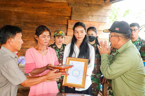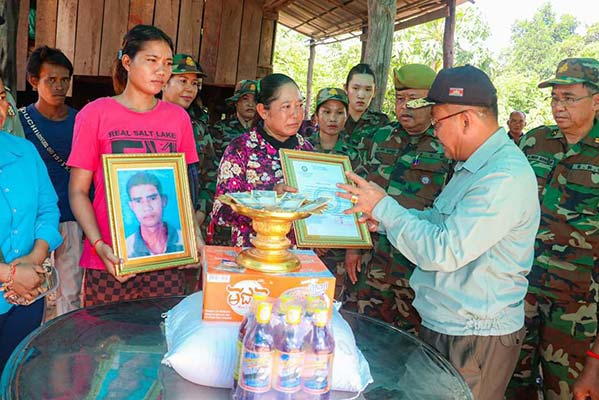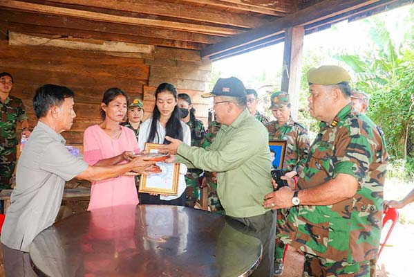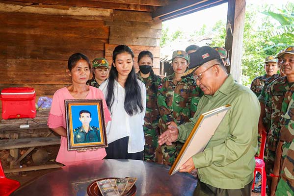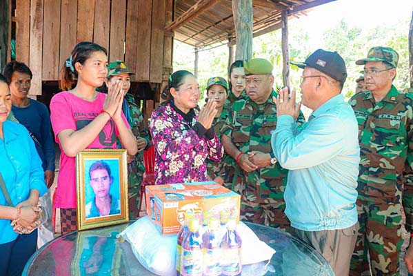 ព្រះវិហារ៖ នៅព្រឹកថ្ងៃទី ០៦ ខែសីហា ឆ្នាំ២០២៤ ឯកឧត្តម ឧត្តមសេនីយ៍ទោ ច័ន្ទ សុភ័ក្ត្រា មេបញ្ជាការ តំបន់ប្រតិបត្តិការសឹករងព្រះវិហារ និងជា ប្រធាន ស.អ.ក ខេត្តព្រះវិហារ បានដឹកនាំ ក្រុមការងារ ស.អ.ក ខេត្ត និងអាជ្ញាធរមូលដ្ឋាន ចុះប្រគល់ថវិកាបេឡាមរណៈសង្គ្រោះ ចំនួន៤,០០០,០០០រៀល ជូនដល់គ្រួសារសពអតីតយុទ្ធជន មួយគ្រួសារ ដែលមានឈ្មោះ ជ័យ ជុន ភេទប្រុស អាយុ ៥៩ឆ្នាំ មុខសញ្ញាពិការ , នៅគេហដ្ឋាននៃសព ស្ថិតនៅភូមិស្រអែមខាងជើង ឃុំស្រអែម ស្រុកជាំក្សាន្ដ ខេត្ដព្រះវិហារ លុះនារសៀលថ្ងៃ ខែ ឆ្នាំដដែល