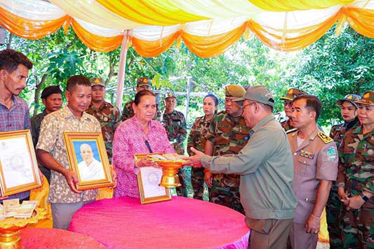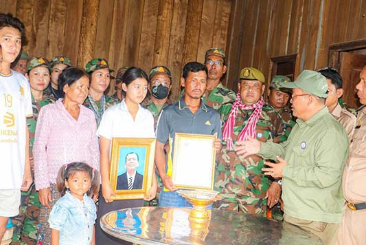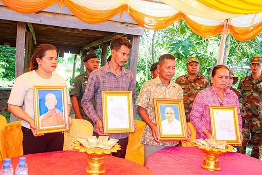 -គ្រួសារ ទី៣ ឈ្មោះ យ៉ុន ប៉ុន ភេទ ប្រុស អាយុ ៦០ឆ្នាំ មុខសញ្ញានិវត្តជន រស់នៅភូមិ ត្បែង ឃុំចំរើន ស្រុក សង្គមថ្មី ខេត្តព្រះវិហារ ទទួលបានថវិការ ចំនួន ៤,០០០,០០០រៀល ។