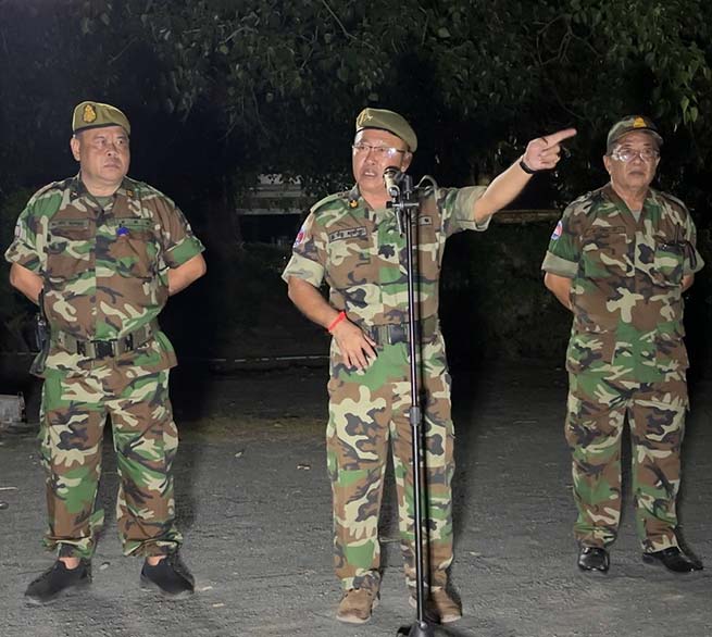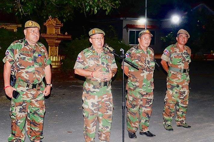 ព្រះវិហារ៖ នៅយប់ថ្ងៃ ទី១៨ ខែ សីហា ឆ្នាំ២០២៤ ឧត្ដមសេនីយ៍ ទោ ច័ន្ទ សុភ័ក្ត្រា មេបញ្ជាការតំបន់ប្រតិបត្តិការ សឹករងព្រះវិហារ យោធភូមិភាគទី៤ កងទ័ពជើងគោក បានធ្វើការត្រួតពិនិត្យ និងប្រគល់ភារកិច្ច សំខាន់ៗចាំបាច់មួយចំនួន ជូនដល់កងកម្លាំងអន្តរាគមន៍ នៃតំបន់ប្រតិបត្តិការសឹករងព្រះវិហារ ត្រូវត្រៀមកម្លាំង គ្រឿងបំពាក់ និងមធ្យោបាយគ្រប់គ្រាន់ រងចាំបទបញ្ជា ដែលថ្នាក់លើប្រគល់ជូន ក្នុងភារកិច្ចការពារ ជាតិ សាសនា ព្រះមហាក្សត្រ និងការពារ រាជរដ្ឋាភិបាល ស្របច្បាប់ ប្រឆាំងរាល់ឧបាយកល ញុះញង់ បង្កចលាចល បំផ្លាញ សុខសន្តិភាព នៅកម្ពុជា ។