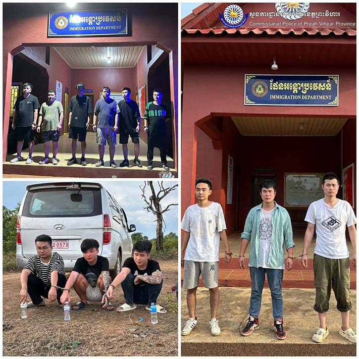 តាមរបាយការណ៍របស់ស្នងការដ្ឋាននគរបាលខេត្តព្រះវិហារ បានឱ្យដឹងថា ក្រោមការអនុវត្តបទបញ្ជាយ៉ាងម៉ឺងម៉ាត់ពីលោកឧត្តមសេនីយ៍ទោ សួស សុខដារ៉ា ស្នងការនគរបាលខេត្តព្រះវិហារ, លោកឧត្តមសេនីយ៍ត្រី តាន់ គឹមលេង ស្នងការរងទទួលផែនការងារអន្តោប្រវេសន៍ បានដឹកនាំកម្លាំងសហការជាមួយកម្លាំងអធិការដ្ឋាននគរបាលក្រុងព្រះវិហារ និងកម្លាំងអធិការដ្ឋាននគរបាលស្រុកជាំក្សាន្ត ធ្វើការបង្ក្រាបករណីលួចឆ្លងដែនដោយខុសច្បាប់ ចំនួន០២ករណី ដោយឃាត់ខ្លួនជនជាតិចិន ចំនួន១៦នាក់។