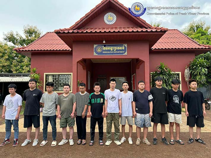 ព្រះវិហារ៖ ជនជាតិចិនចំនួន១៦នាក់ ត្រូវបានកម្លាំងនគរបាលខេត្តព្រះវិហារ ឃាត់ខ្លួន ពីបទលួចឆ្លងដែនដោយខុសច្បាប់ ចេញពីទឹកដីប្រទេសឡាវ ឆ្លងចូលទឹកដីប្រទេសកម្ពុជា។